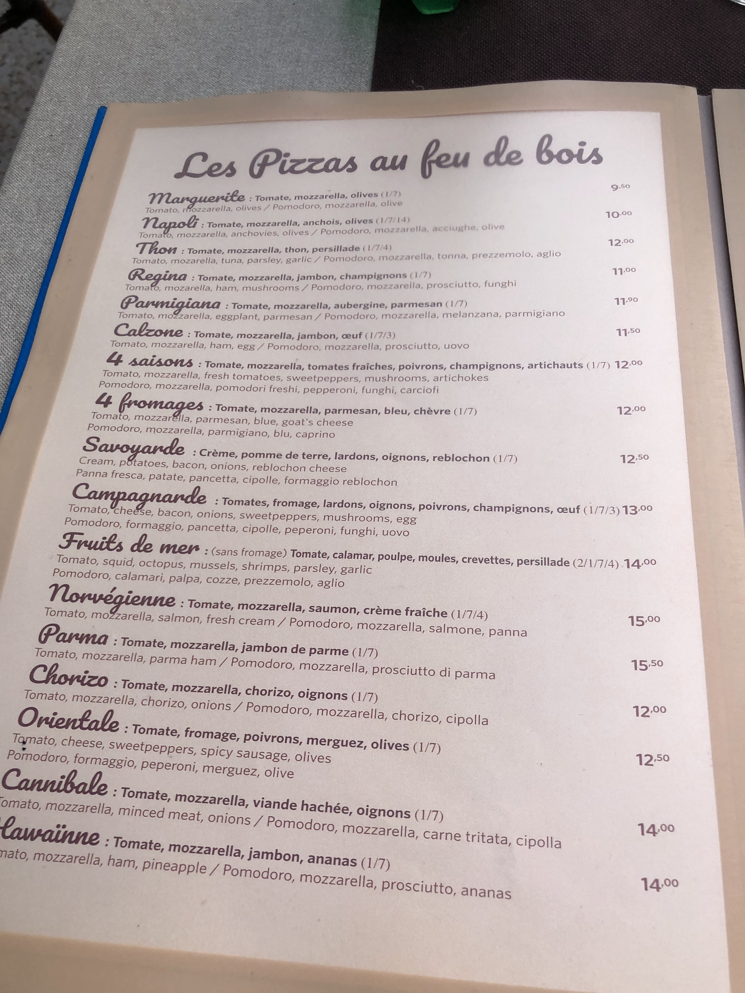 Choix solide, rien de trop spécial. Mais si vous aimez vous asseoir dehors et que vous souhaitez un large choix de pizzas, tartares, moules, salades, lasagnes, etc. à un prix raisonnable, c'est ici qu'il faut aller !