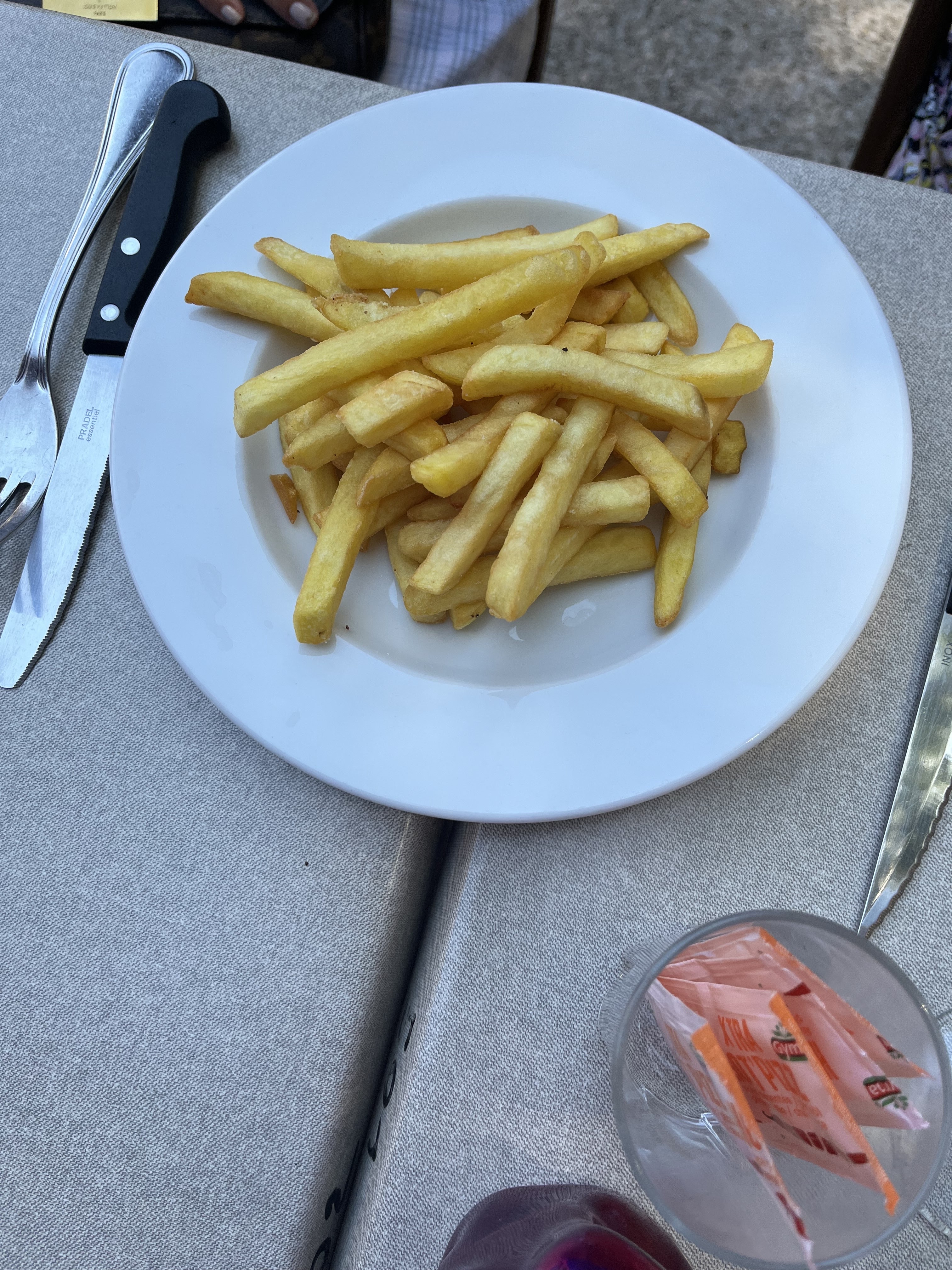 L'entrecôte avec des frites était excellente, à essayer si vous êtes à Antibes !
