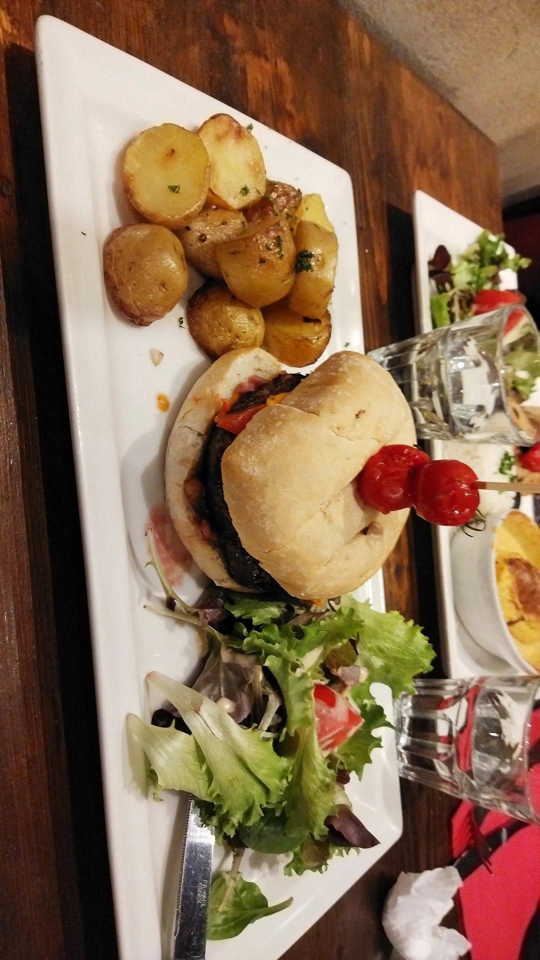 Repas catastrophique , une bavette dur comme du béton demandé saignante arrivé à point , un burgeur avec du pain encore congelé , quand l’on renvoie l’assiette elle revient avec un nouveau pain , une tranche de fromage et du ketchup mais sans viande . 3 autres burgeur avec le même problème . Comme par hasard problème d’internet donc pas de CB , je demande donc à essayer quand même on ne sait jamais mais non c’est impossible … Qu’est ce qui doit être déclaré dans ce restaurant … je me le demande . Heureusement un serveur était top et on le remercie . Aucun geste commercial n’a été fait et pourtant aucune assiette n’a pu être mangé . Lorsqu’on demande à voir le patron il n’y en a pas .. Ne recommande pas dutout Soirée horrible et mal de ventre après le repas assuré .