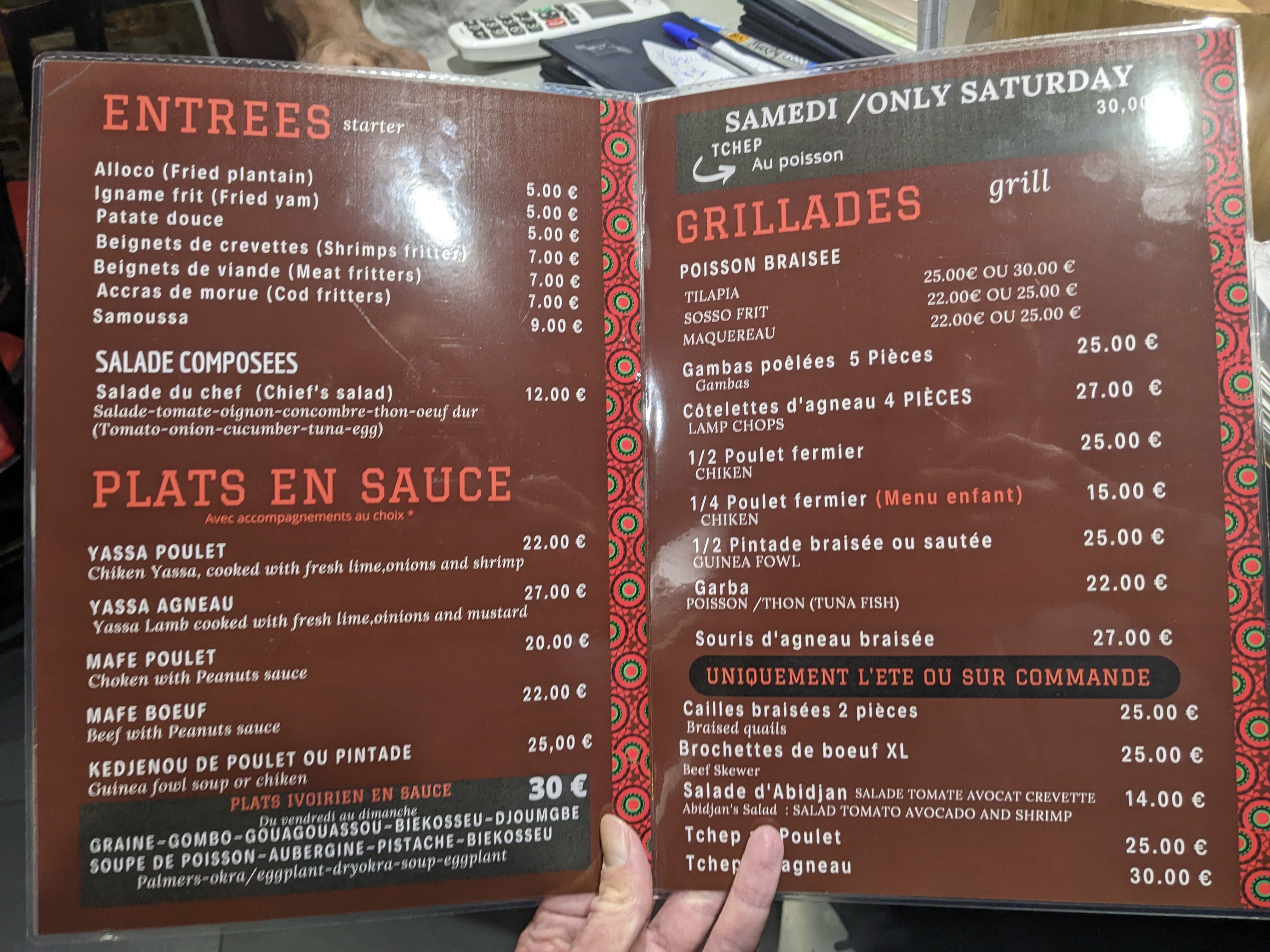 Alors ....on est en côte d'ivoire. Cuisine excellente,le service et l'accueil au top. Il faut absolument venir manger chez Marie Ange.