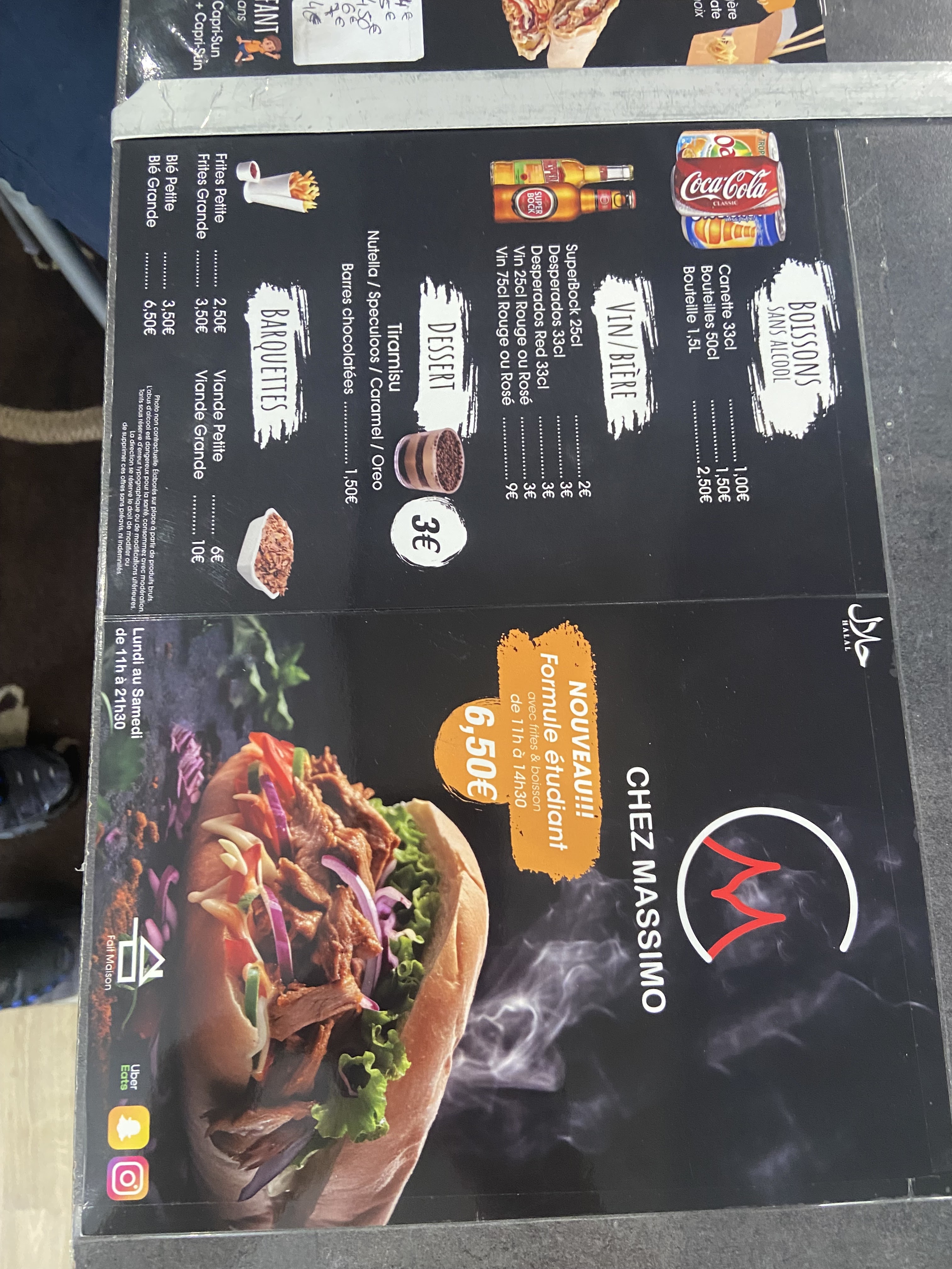Je suis passé chez Massimo hier à midi pour manger le restaurant ce situe à sarcelles, sarcelles village à la première minute dans le restaurant je me trouve bien accueilli et serviles en quelle que minute mais aussi la proprette et le service sans irréprochable leur plate sont incroyables surtout le kebab au four.