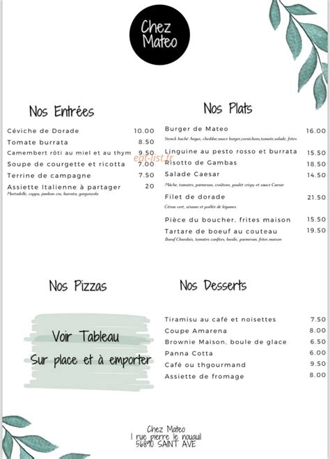 Voici toutes les informations sur le Restaurant Chez Matéo qui ce trouve au 1 Rue Pierre le Nouail, 56890 Saint-Avé (56). Sur cette fiche vous trouverez les photos, l'adresse, les horaires d'ouverture, le numero de téléphone et les avis clients.Vous pouvez églement rédiger un avis si vous le souhaitez en bas de page.