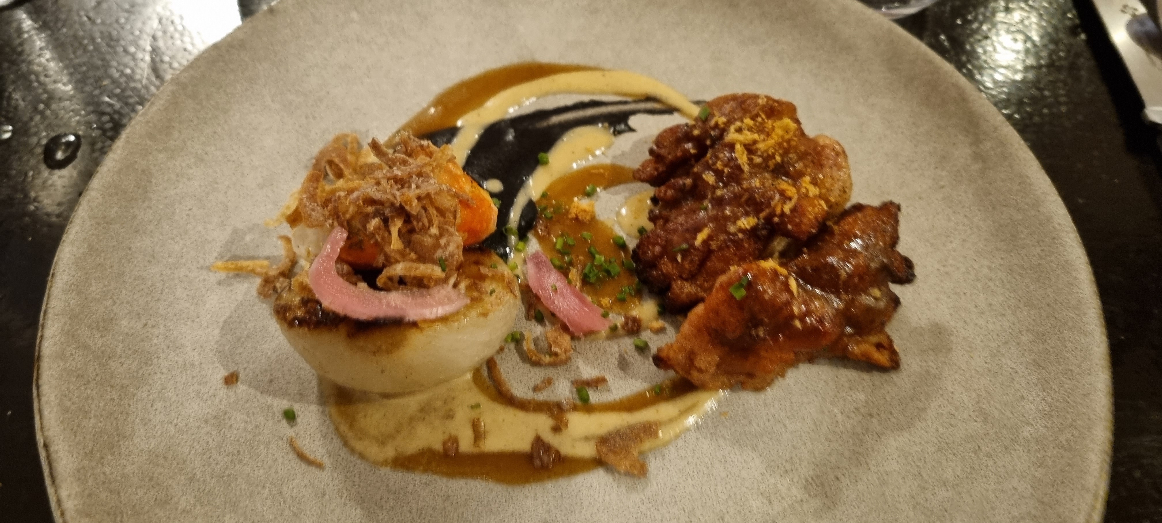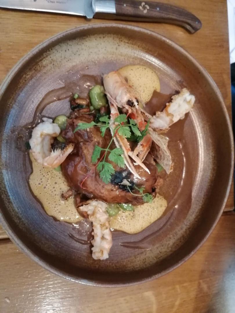 Accueil et service sympathique et impeccable avec une pointe d'humour. Quand aux plats, mélange harmonieux terre et mer. Rien à redire, je conseille (mais il faut réserver à l'avance)