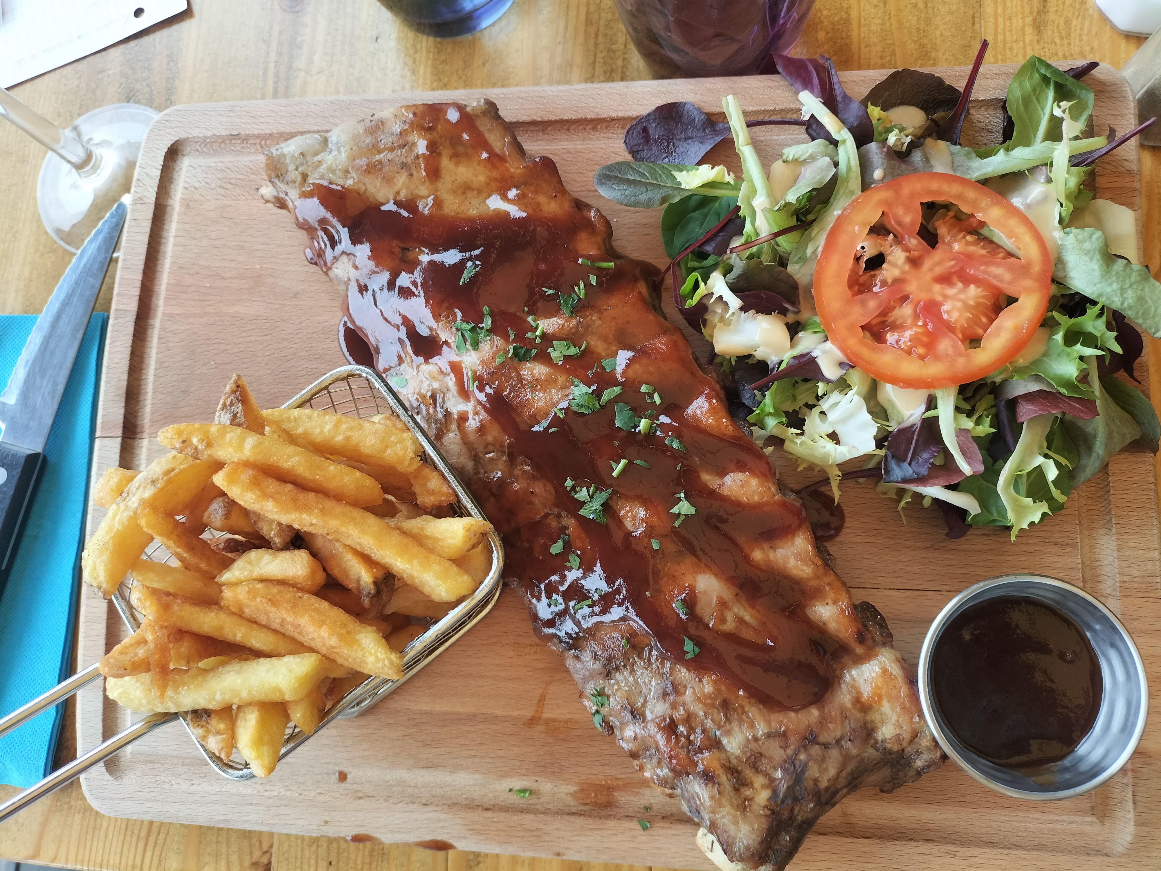 Nous nous promenions le long du port de st Laurent du Var quand soudain, un drôle d’énergumène nous aborda de manière somme toute brutale bien qu’amicale. Ce dernier nous proposa de venir déguster ses tapas, nous avons donc choisi de répondre à son invitation. Nous nous sommes installé et avons commandé deux pressions ainsi que des natchos. Ces chips avaient tout sauf le goût de réel natchos, un fromage excessivement salées ainsi que des sauces tout juste mexicaines. Cependant la ration était généreuse. Ensuite nous avons commandé deux plats un burger ainsi qu’un magret de canard à la sauce au miel accompagnée de frites médiocres. Le burger était assez basique. Pour ce qui est du magret de canard, la sauce au miel était douce et sucrée, toutefois la viande ne semblait pas d’une qualité exceptionnelle bien que la cuisson était correcte. En fin de compte nous n’avons pas ressuis à terminer nos assiettes. Il est bon d’être généreux mais il est encore meilleure d’être douée. Résultat nous avons choisis de mettre la note de 3/5 car l’accueil était chaleureux et les quantités généreuses par rapport aux prix. Malgré cela un petit effort sur la qualité aurait était fort appréciable.