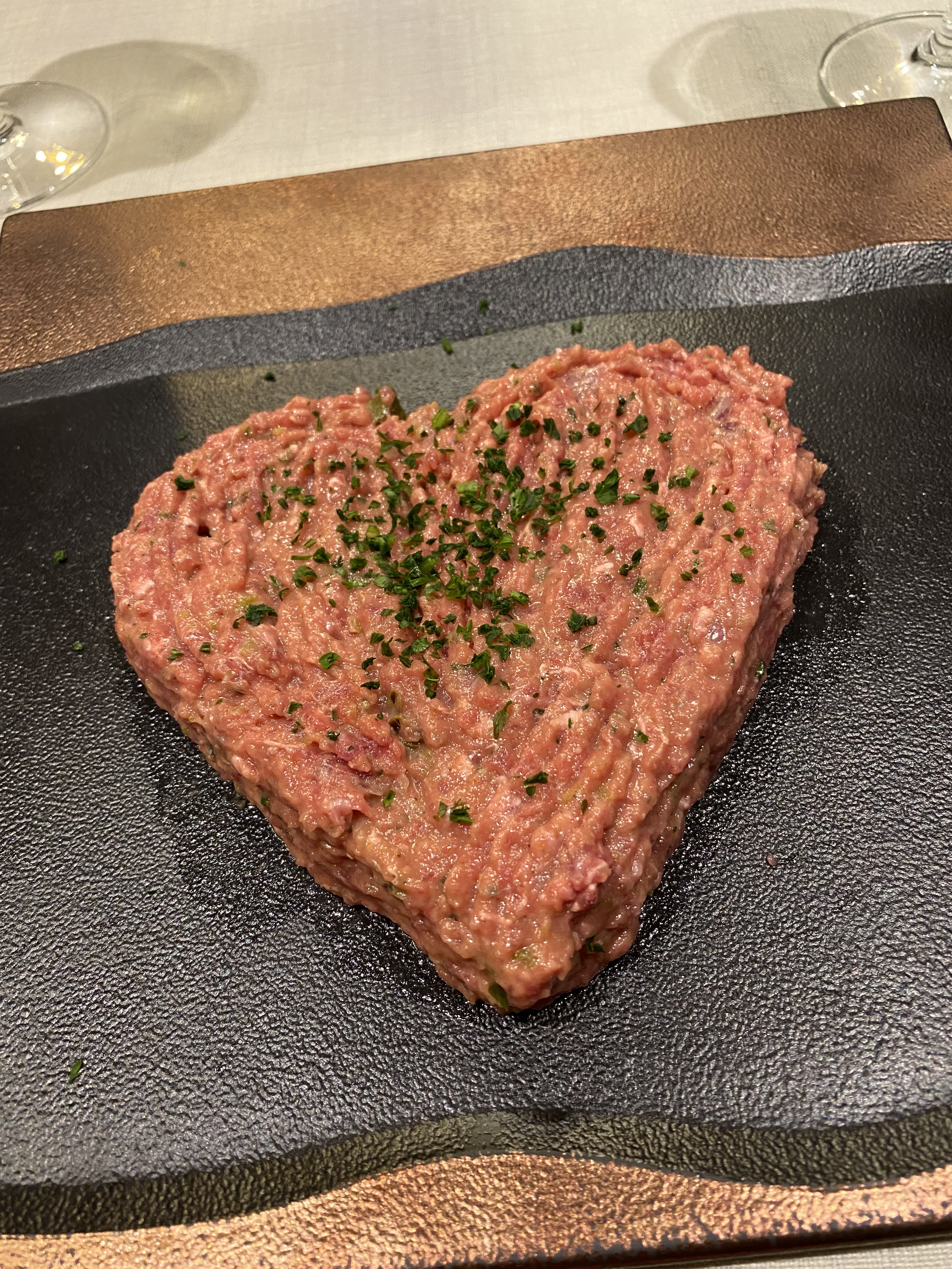 Nous connaissions ce lieu, déjà allés il y a quelque temps. Nous y sommes retournés 2 fois en 3 mois. Le tartare est excellent et préparé devant vous selon un rituel bien huilé. Superbe choix de champagne. Plateau de fromage à tomber. Merci