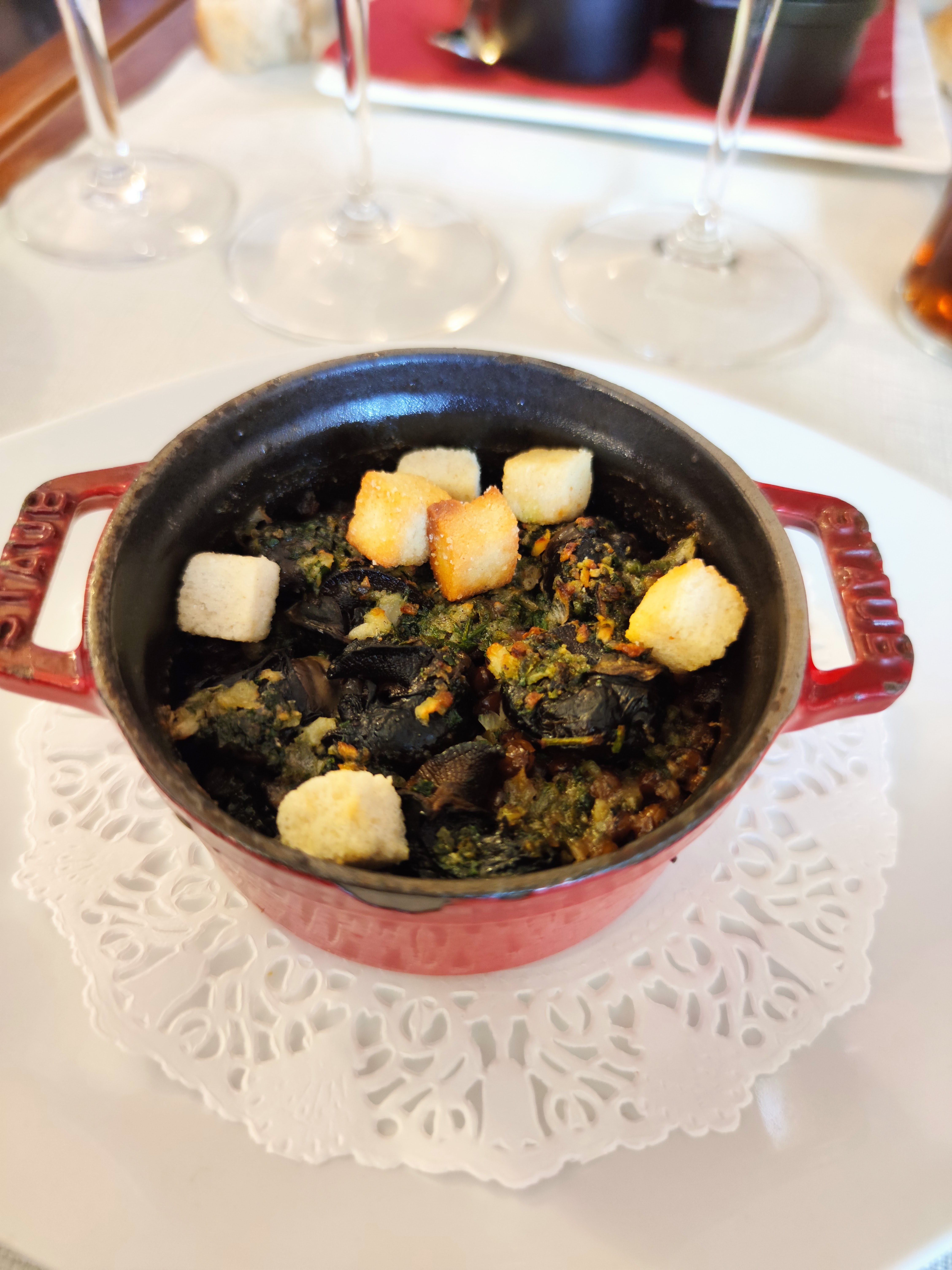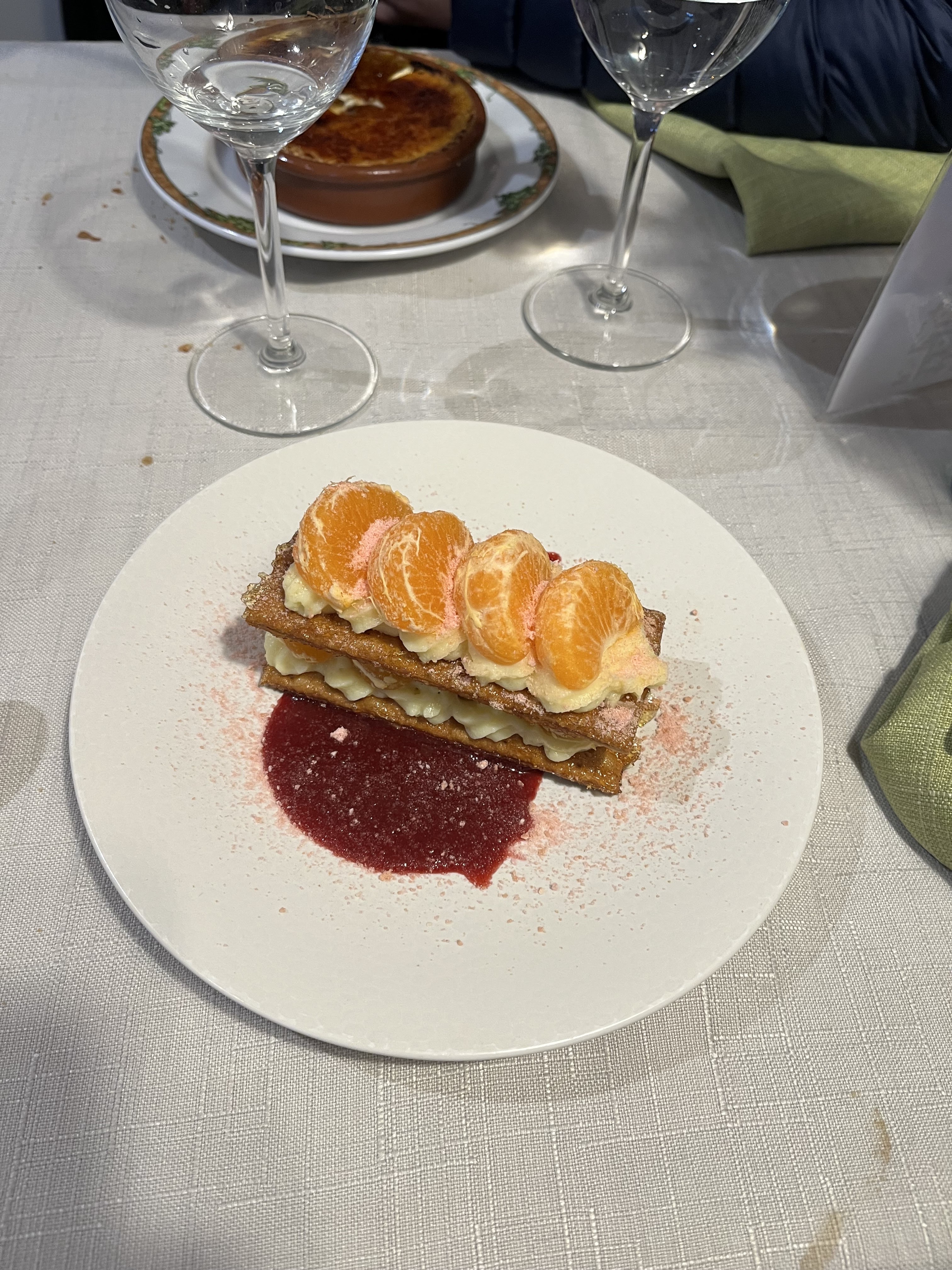Nous y avons très bien mangé, la croustade aux champignons était très bonne, le plateau de fromages bien garni, les desserts agréables. Nous avons moins aimé les plats, néanmoins c’est une très bonne adresse avec un joli rapport qualité /prix. En revanche nous avons eu froid. Les serveuses avaient elles aussi des doudounes sans manches. Un brin plus de chauffage aurait fini de nous mettre à l’aise