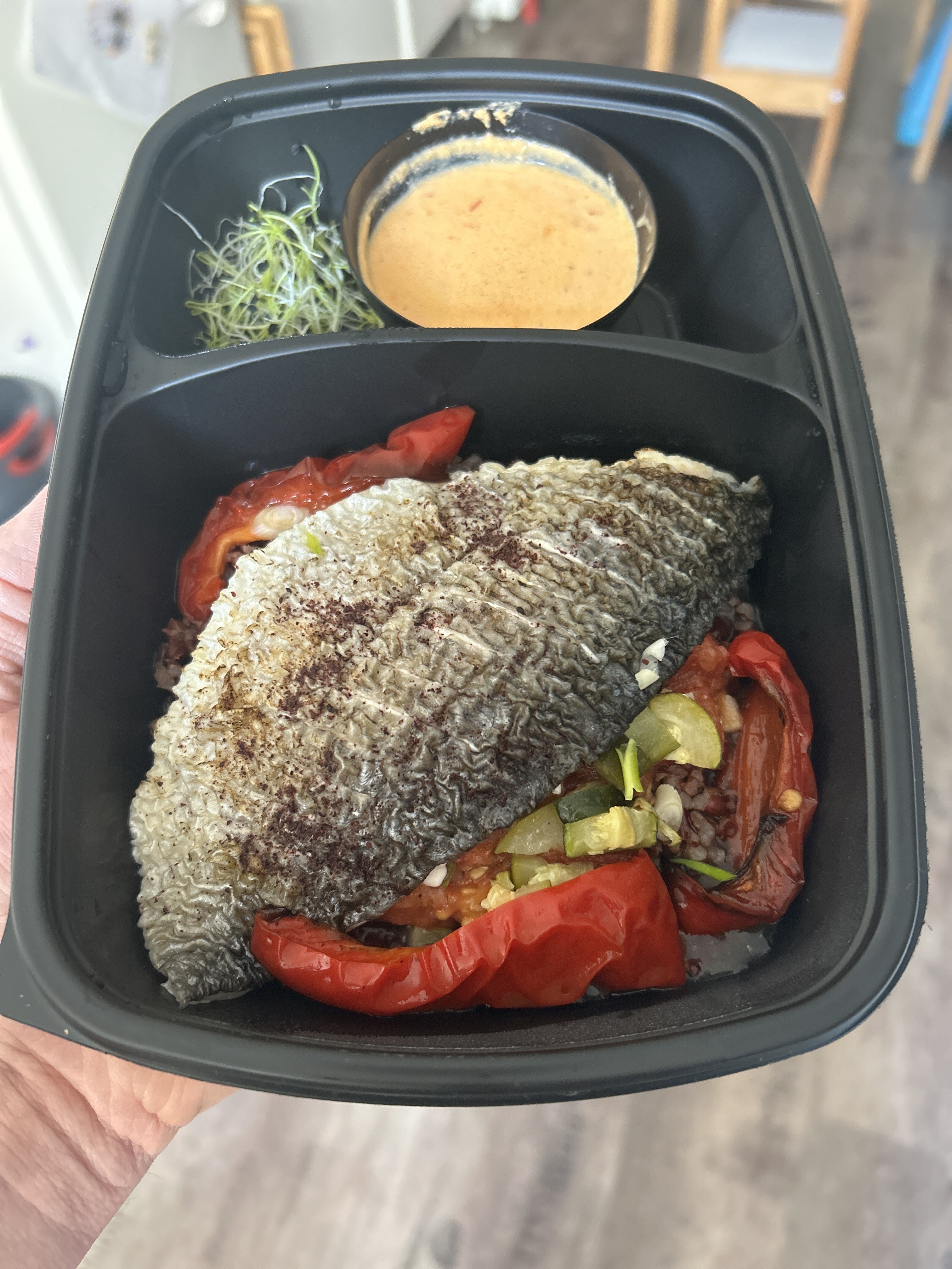 À la foire gastronomique d’AUXERRE ce week-end, j’ai eu la chance de gagner un lot offert par le chef. Monsieur Paul Le Goff Il s’agissait d’une dorade royale avec une crème de poivrons, un riz de Camargue et des légumes C’était un vrai régal La photo n’est pas exceptionnel, mais le plat il était vraiment ! Merci chef