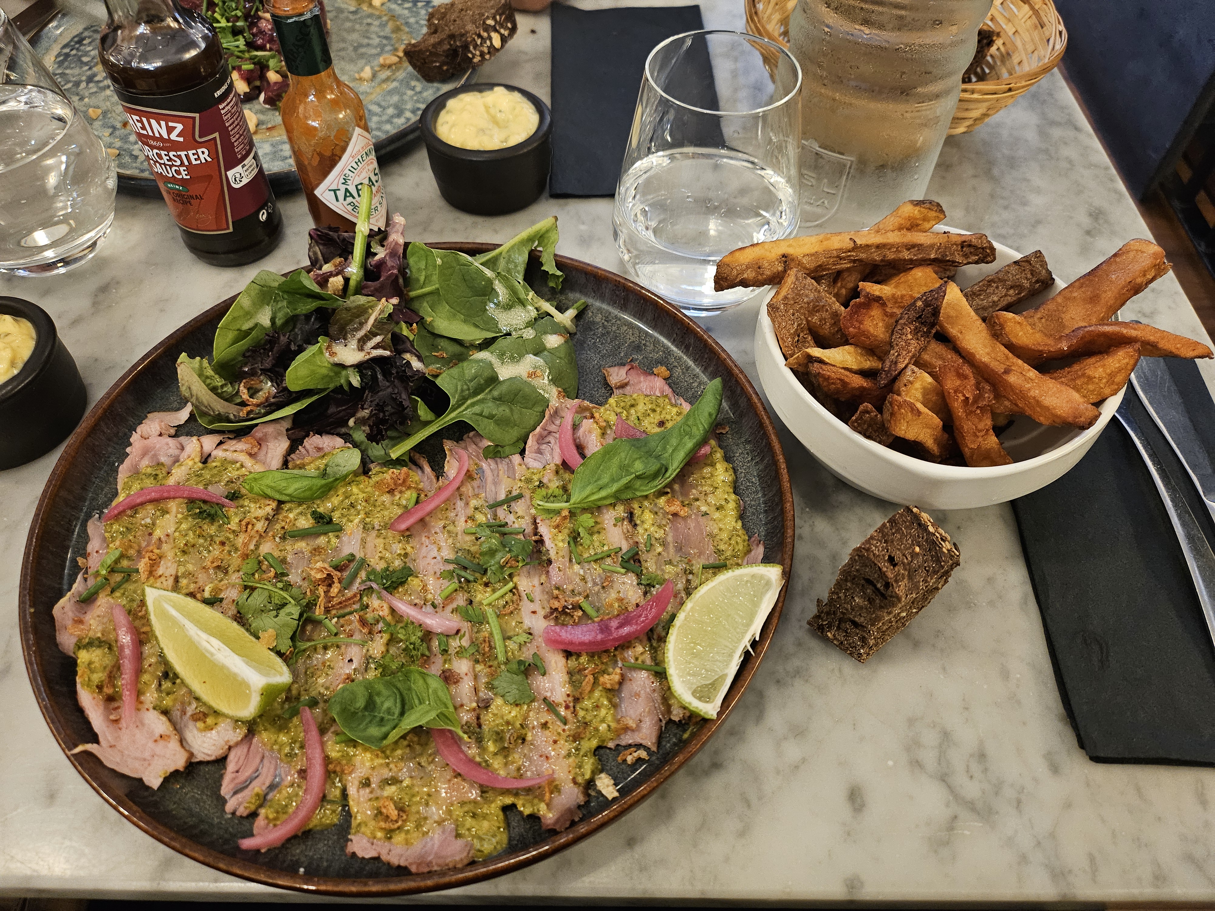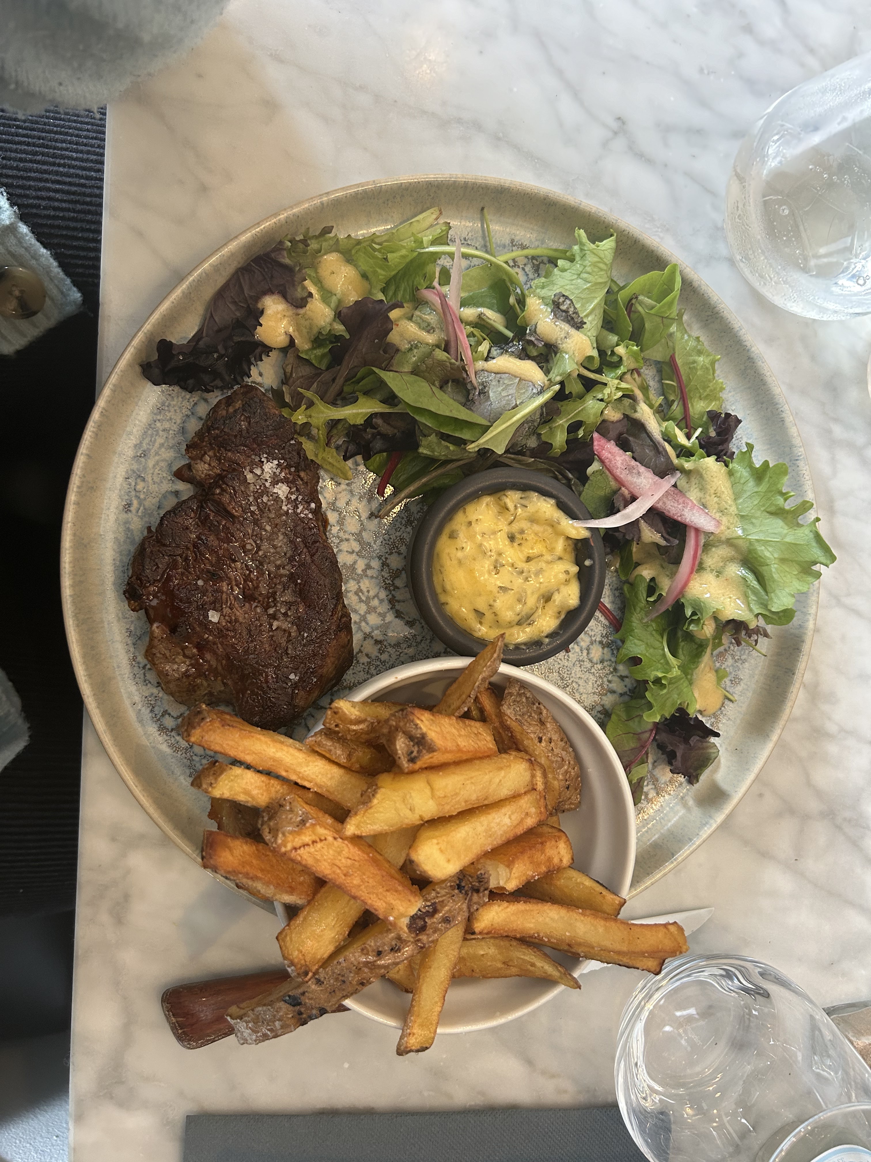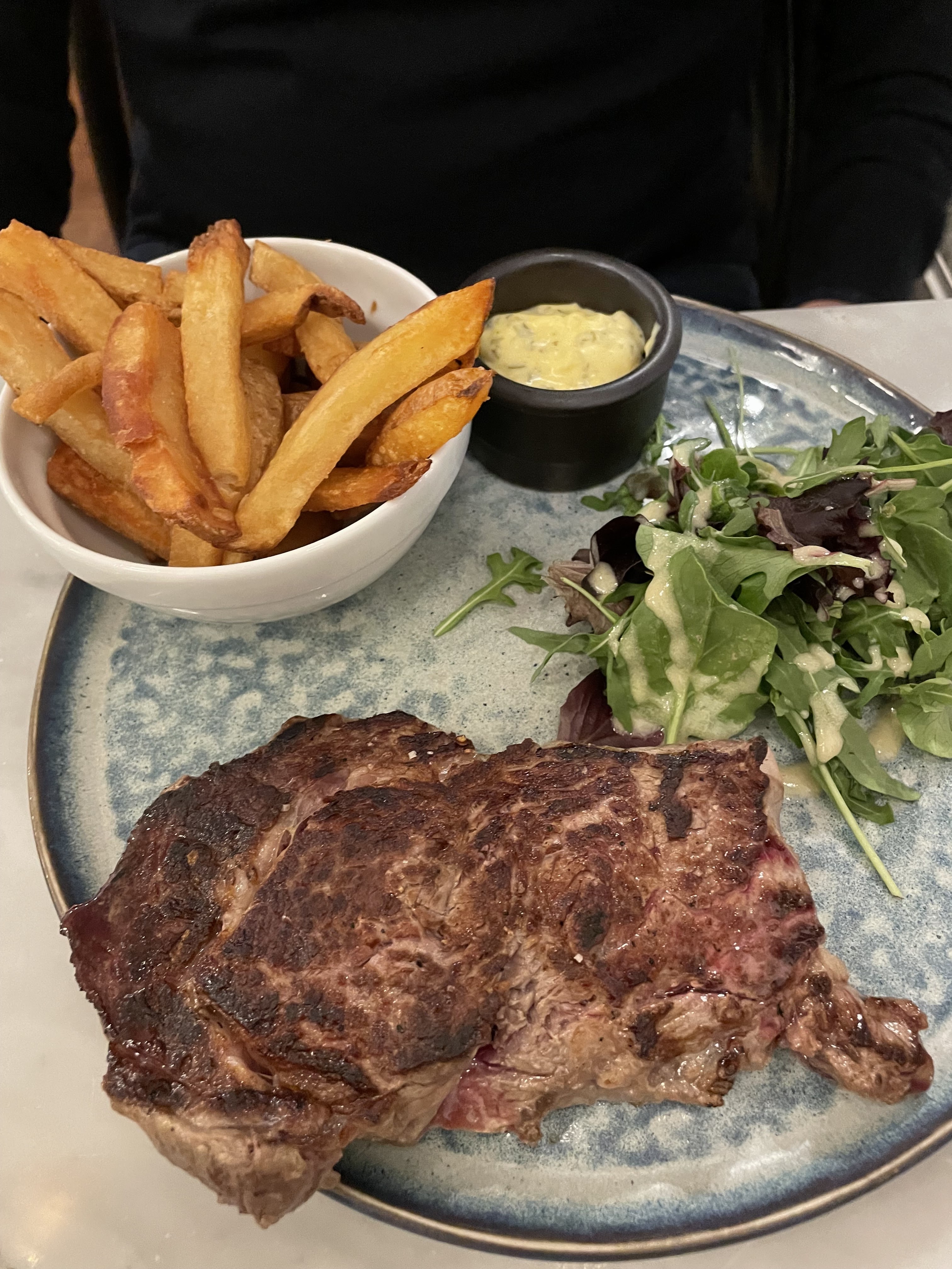 Bonjour. Belle qualité des plats. La côte à l'os à partager, très gouteuse, aurait justifié d'avoir ...3 assiettes. La restriction, pour 2, semble inappropriée. Belle soirée cependant dans ce bistrot.