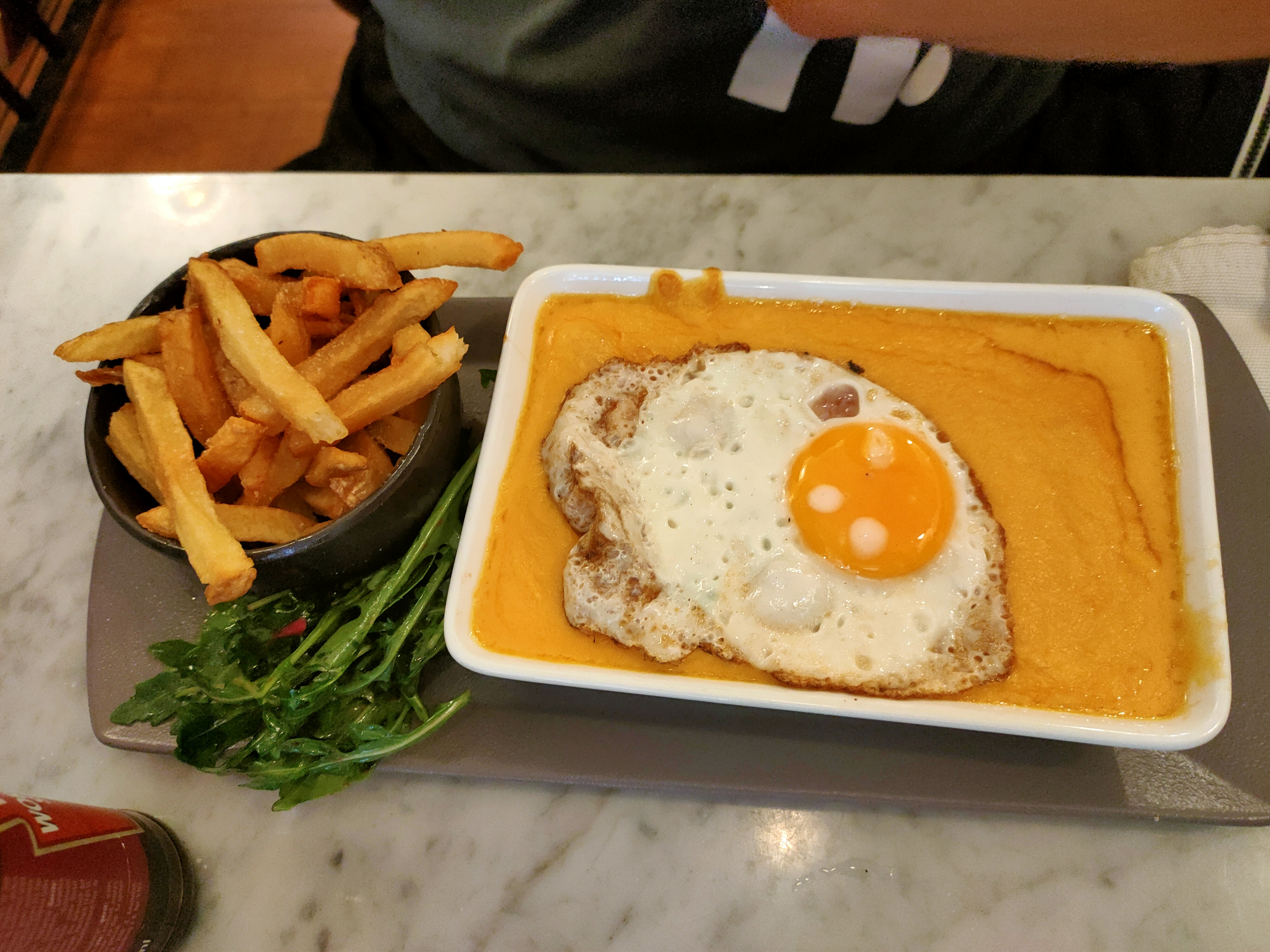 Arrivé la grâce aux excellents commentaire de TripAdvisor , ma 1ere réaction fut la frustration de voir que les œufs cocottes au maroille avaient disparu de la carte.....sacrilège Il ne restait plus que le welsh pour le côté local ! Les plats sont à 17€ et sont plutôt bons . Dessert et entrées à 7€. Du coup je ne comprends pas trop l'intérêt de la formule E+P+D à 30€ ! On a vu plus avantageux. Tout le monde a apprécié mais le service a été extrêmement long alors qu'il y avait 6 couverts seulement dans le resto. Je n'irai pas un samedi soir 😨😨