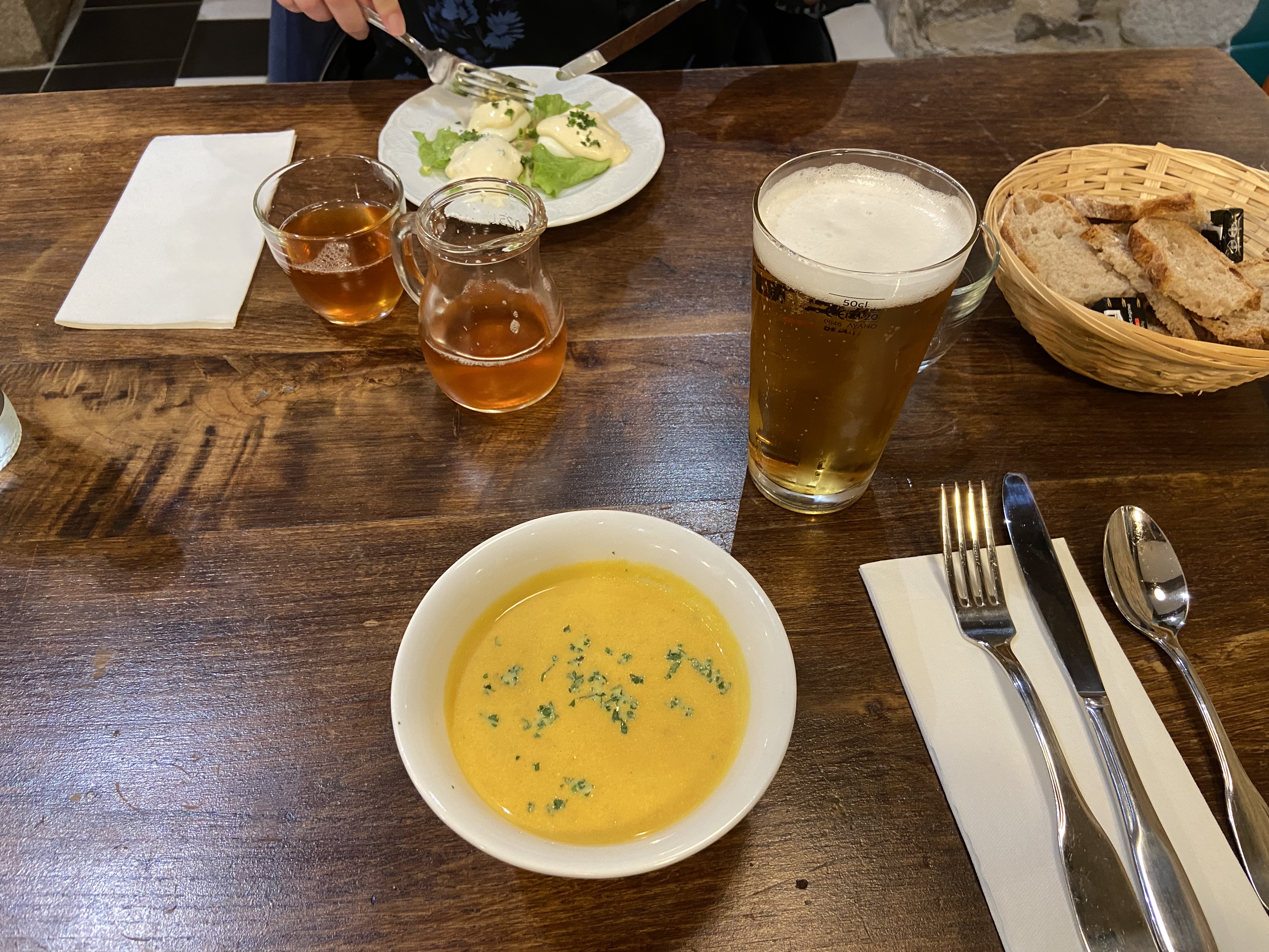 Restaurant avec un cadre original dans le vieux Quimper. La carte alléchante en poissons n’a malheureusement pas tenu ses promesses pour nous. Dommage.
