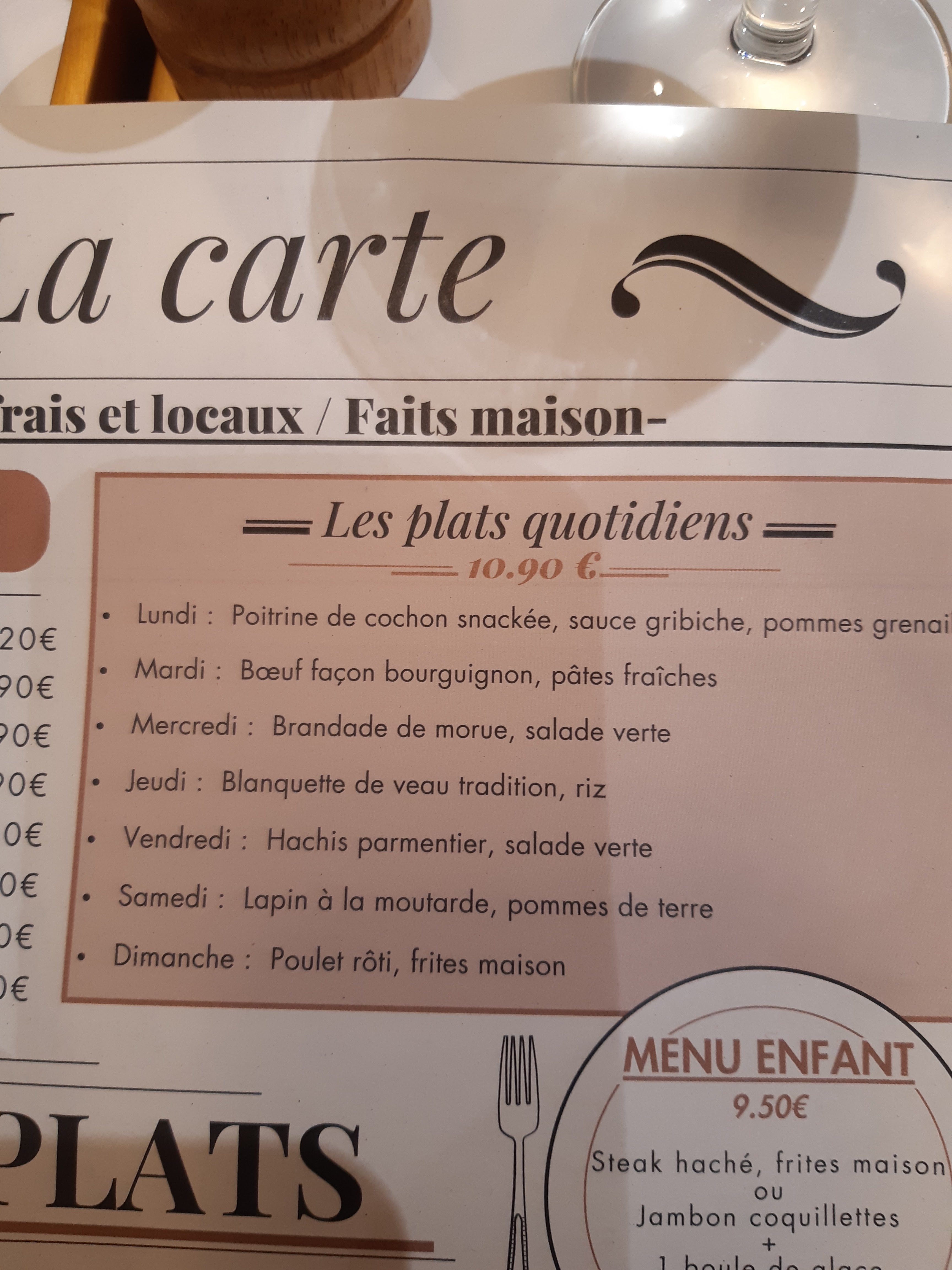 Mais quelle belle découverte. La carte ! Superbe originale. Le contenu, des plats traditionnels à des prix très raisonnables. La qualité est la. On va revenir très vite. Vous pouvez y aller les yeux fermés !