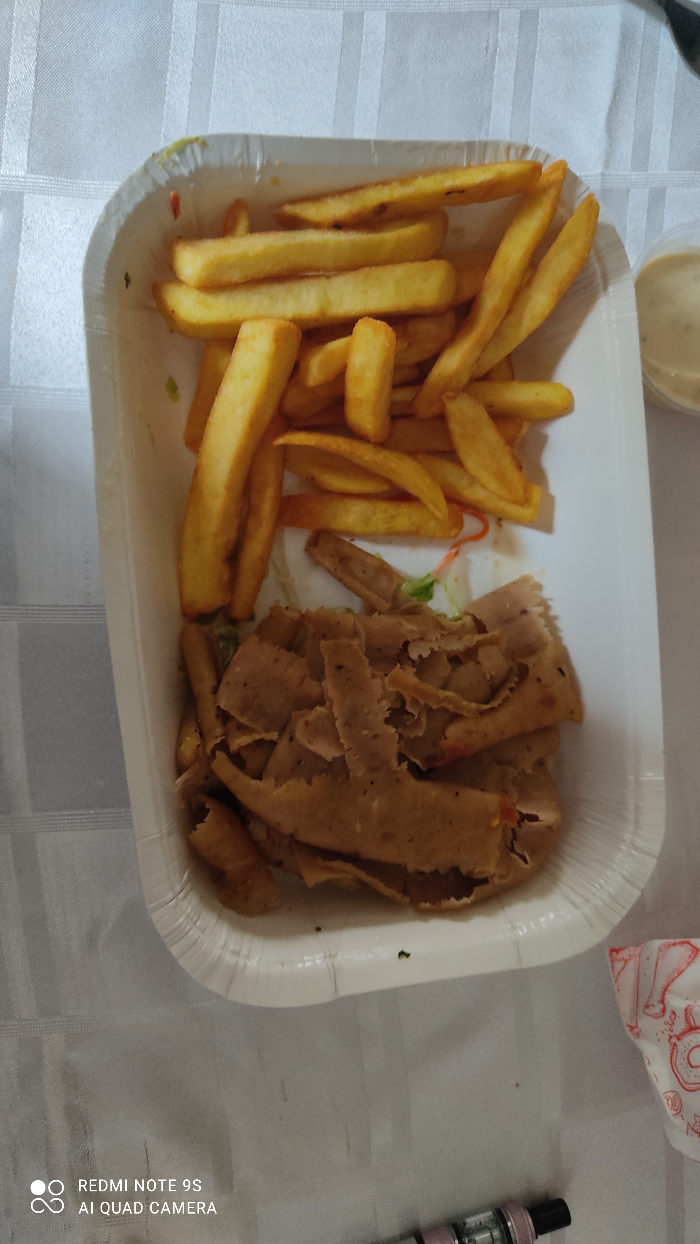 Un kebab en poche mdrr une poche de carton à emporter sans couvert sans rien soit disant sa revient moins chère qu'une assiette donc résultat du compte tout poubelle pas prêt d'y retourner....
