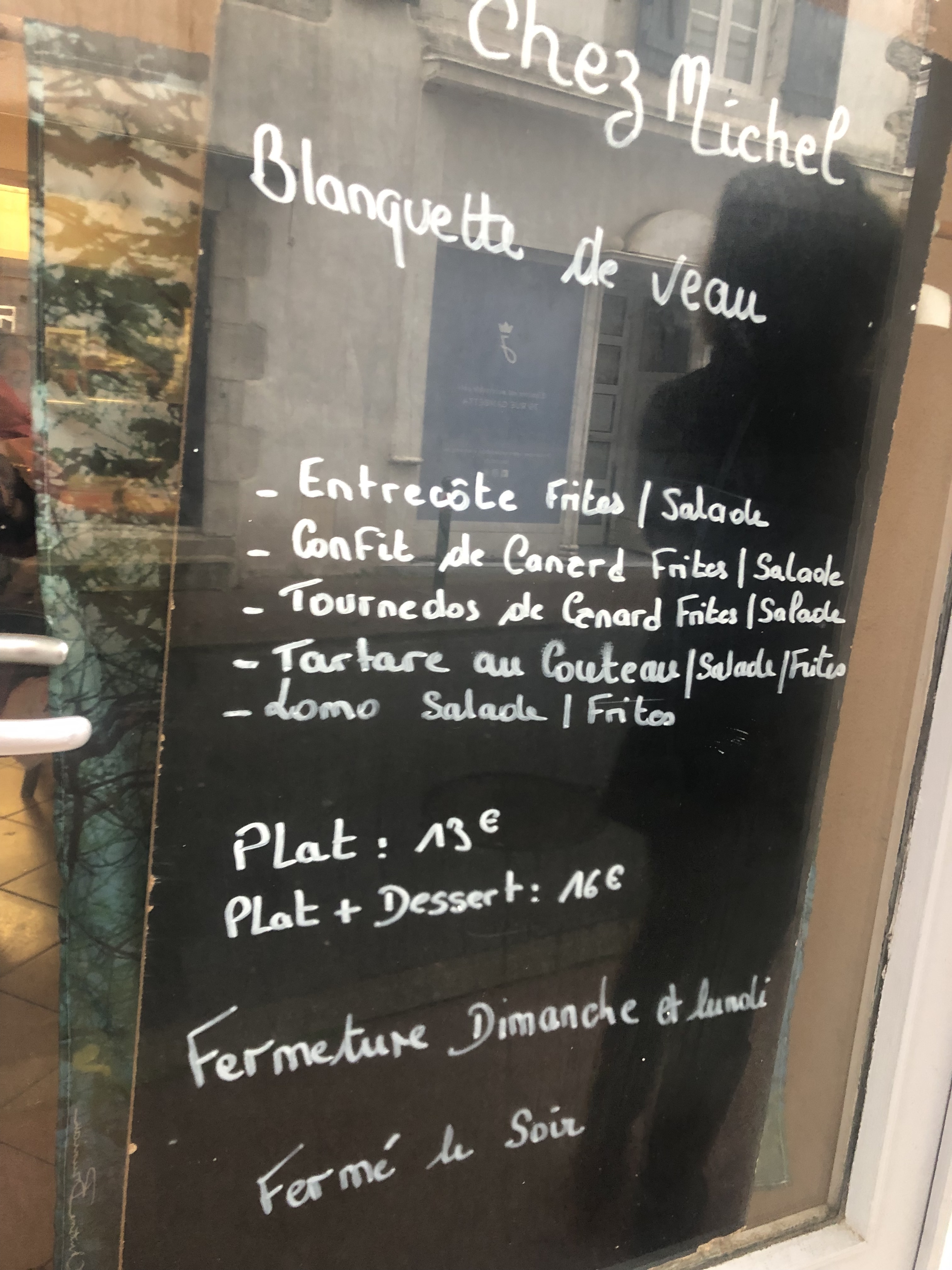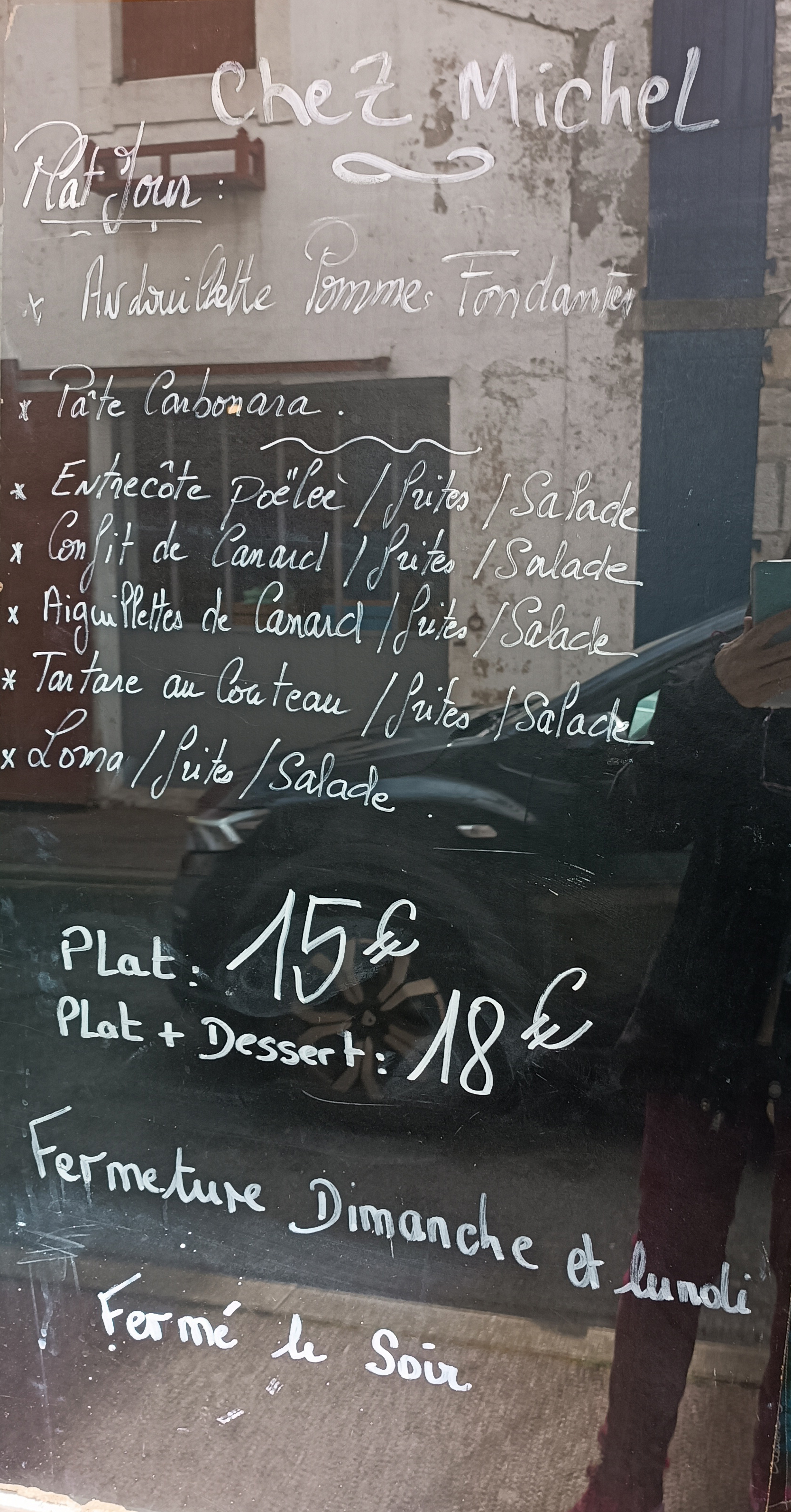 Si vous voulez manger de la vraie cuisine française, c'est chez vous ! A la recherche avec mon partenaire d'un restaurant typiquement français pour tester un vrai menu français, nous avons trouvé le chef Michel. En entrant nous avons eu la surprise de voir le restaurant si plein alors que le reste des restaurants que nous avions vus étaient vides, c'était le vendredi 30/03/2023. C'était plein de locaux et il y avait aussi quelques Espagnols. Dès notre entrée et avec le sourire, ils nous ont accueillis, essayant 100 x 100 de nous comprendre (je ne parle pas français) et de nous faciliter les choses. J'ai commandé un plat plus dessert avec mon partenaire et nous avons choisi le plat du jour, un plat de morue avec pomme de terre et laitue, c'était délicieux, pour le dessert ils ont recommandé du pudding et un autre (je ne me souviens plus du nom) et ils étaient très bien. Si vous êtes un touriste extérieur et que vous souhaitez goûter à la cuisine typique d'un restaurant français, je pense que cet endroit est le bon. ;) Le plat coûte 15€ ou 17€ avec le dessert 🥞 🤤