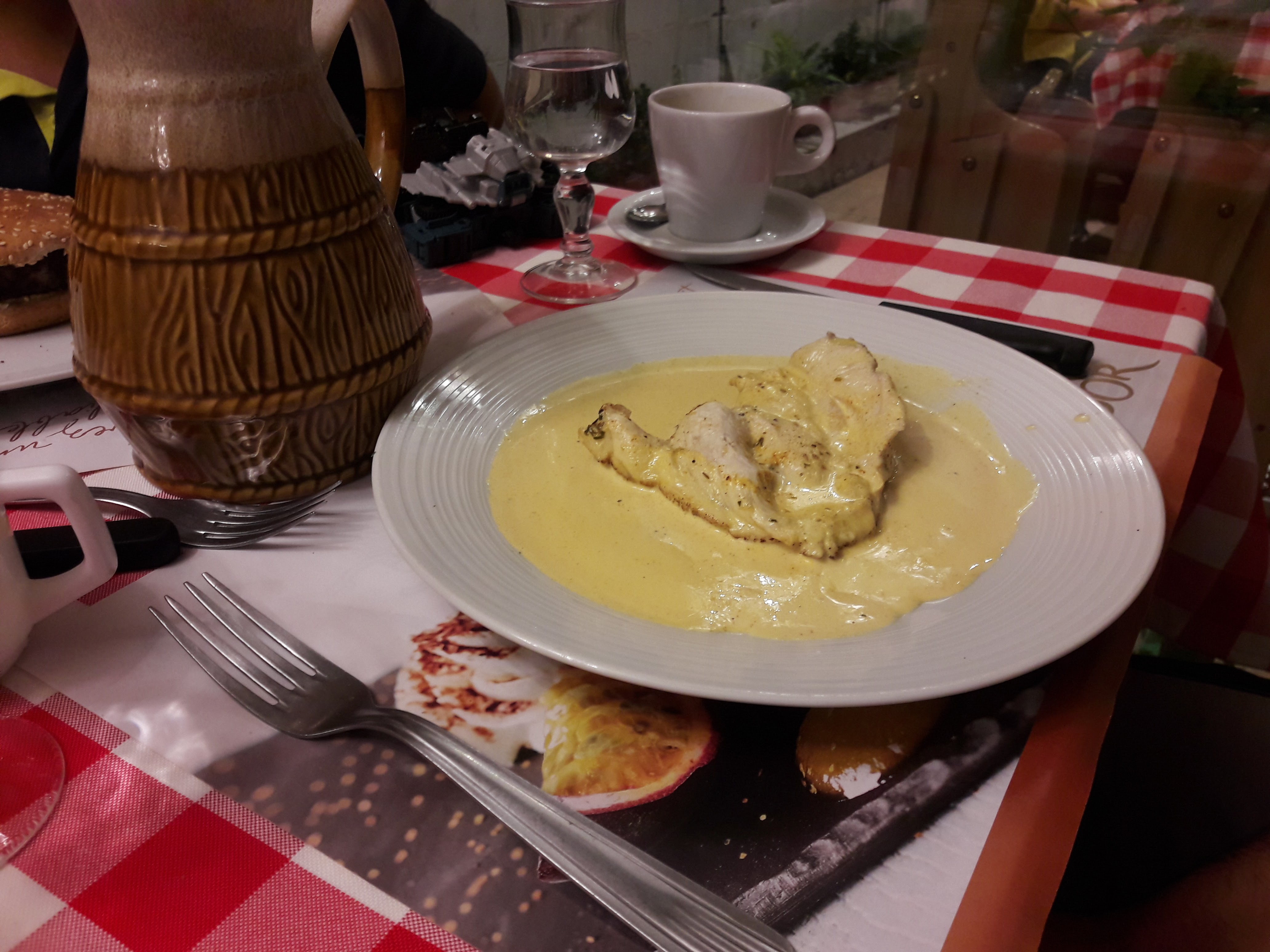 Un bon repas dans ce petit restaurant français traditionnel et pittoresque. Le propriétaire fait tout... cuisine, attend, divertit, fait la vaisselle. Pas beaucoup de choix au menu mais je parie que chaque plat est maîtrisé à la perfection. Le poulet à la crème était délicieux. Coût total 90 € pour 3 personnes, une bouteille de vin comprise. Nous avons déjà dépensé le double pour un repas de qualité bien inférieure. Hautement recommandé