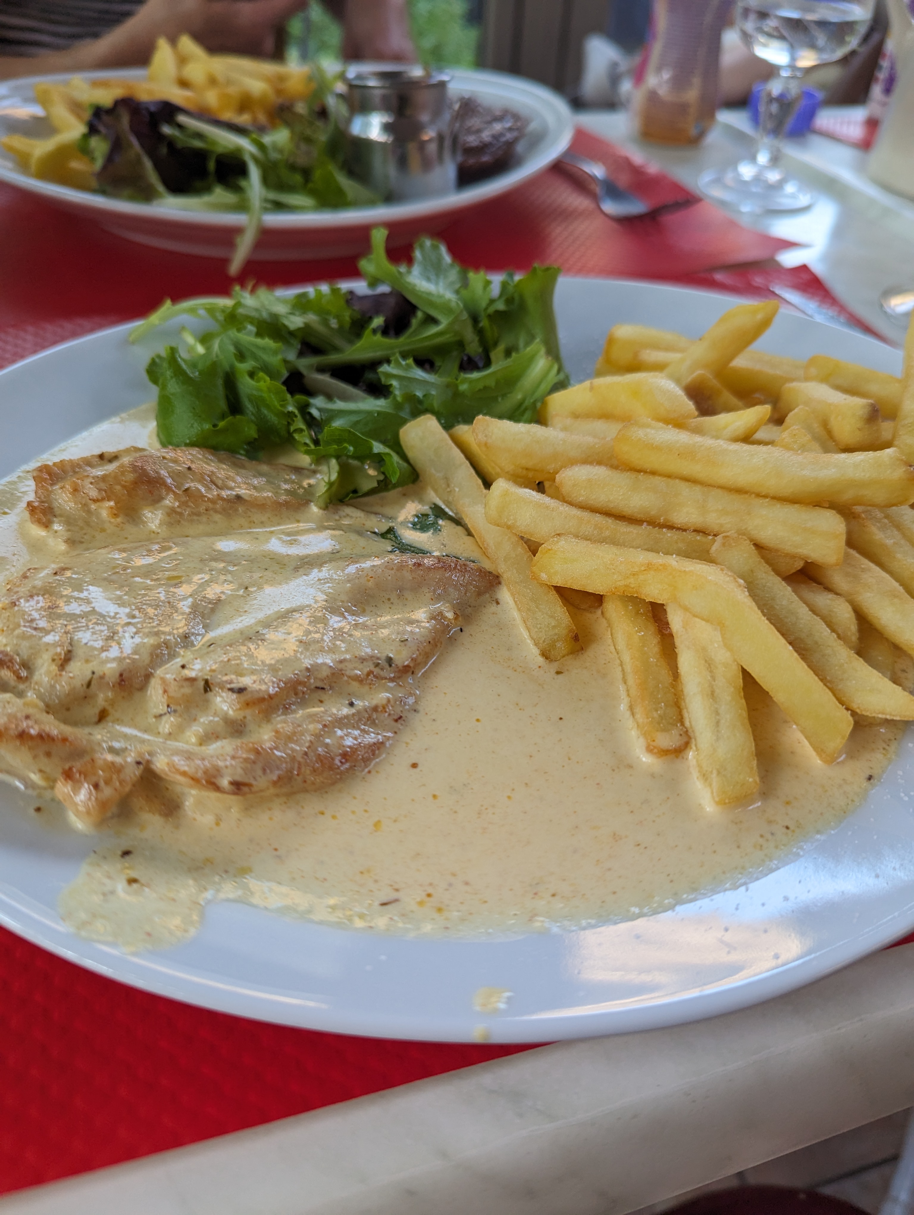 Je recommande le poulet à la crème avec des frites, le restaurant est la quintessence française, Diddy est un super gars que nous connaissons depuis de nombreuses années, fou mais d'une belle manière et qui rigole bien, vous ne serez pas déçu