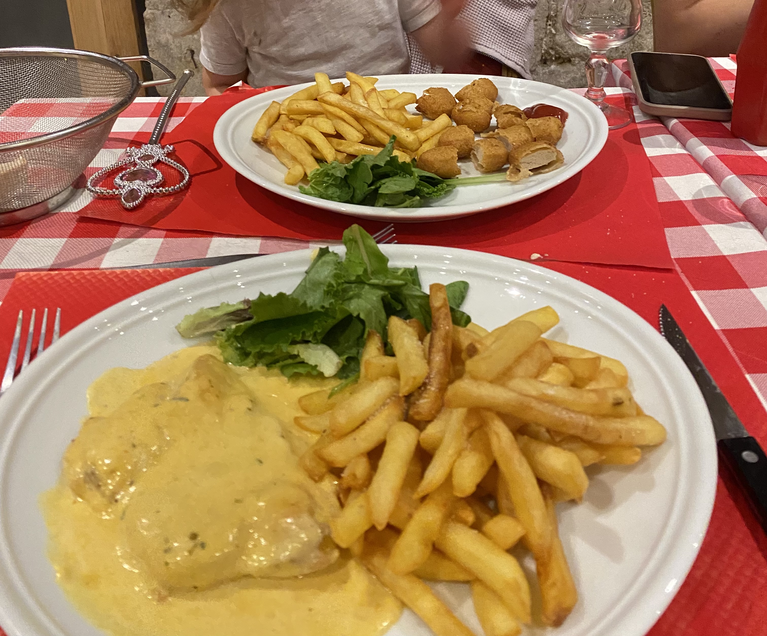 Nous avons emmené nos 3 enfants âgés de 10, 9 et 2 ans - il y avait plein de nourriture et c'était magnifique ! Ils n'en avaient jamais assez des délices français ! Restaurant familial traditionnel, je le recommande sans hésiter mais vous devrez réserver en haute saison :)