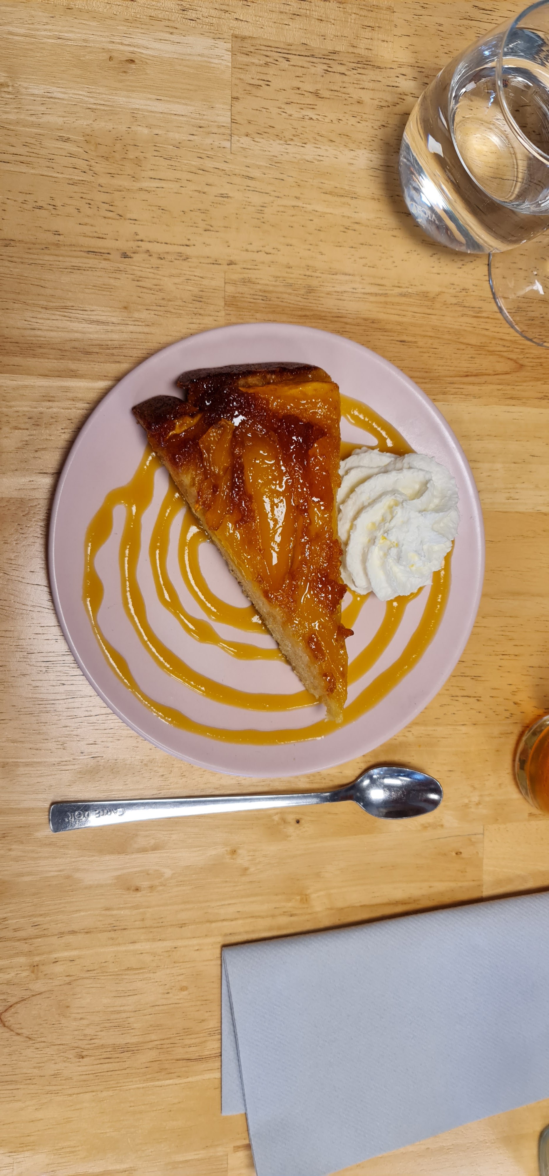 Très gentil accueil des 3 personnes prèsentes. Service rapide, efficace et véritable sourire. Penne a la poitrine de porc fumé bonne. La viande est fondante. Un peu trop de sauce et un peu trop liquide pour moi. Crumble dèlicieux