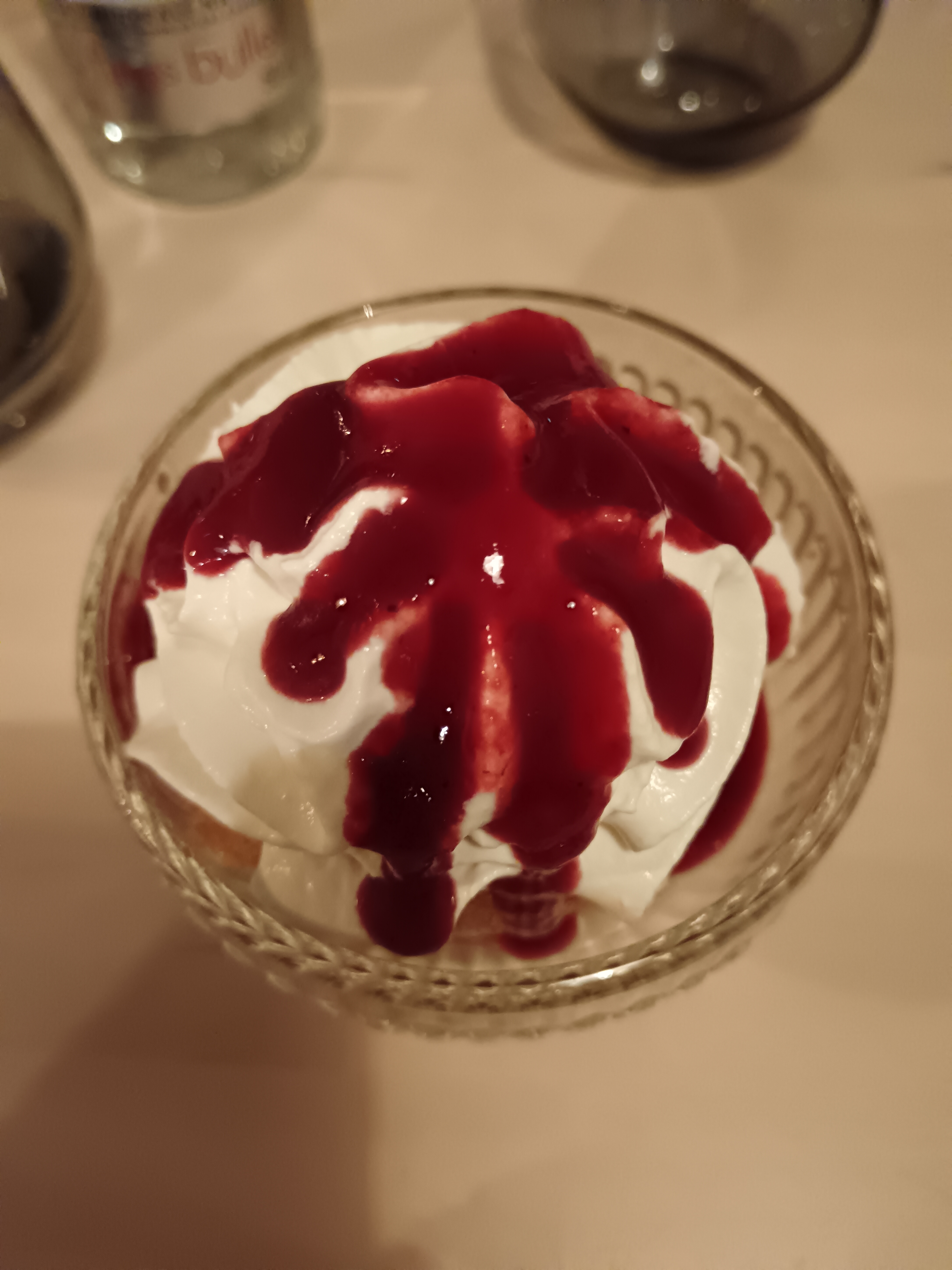 Le plat principal était assez correct, nous avions un mélange de tapas et de steak. Bonne sélection de bières. Le dessert était un désastre. Deux mousses au chocolat étaient recouvertes de moisissure. J'ai essayé de le dire à la serveuse, mais elle l'a rejeté comme étant les bulles dans la mousse sans même regarder les articles offensants. Les a renvoyés, aucune alternative ni excuse n'a été proposée. N'y allez que si vous vous sentez courageux ou si vous souhaitez perdre du poids. Mise à jour pour répondre : Si vous regardez les photos, vous pouvez voir que ce n'est pas du blanc d'œuf. Il est moelleux/poilu.