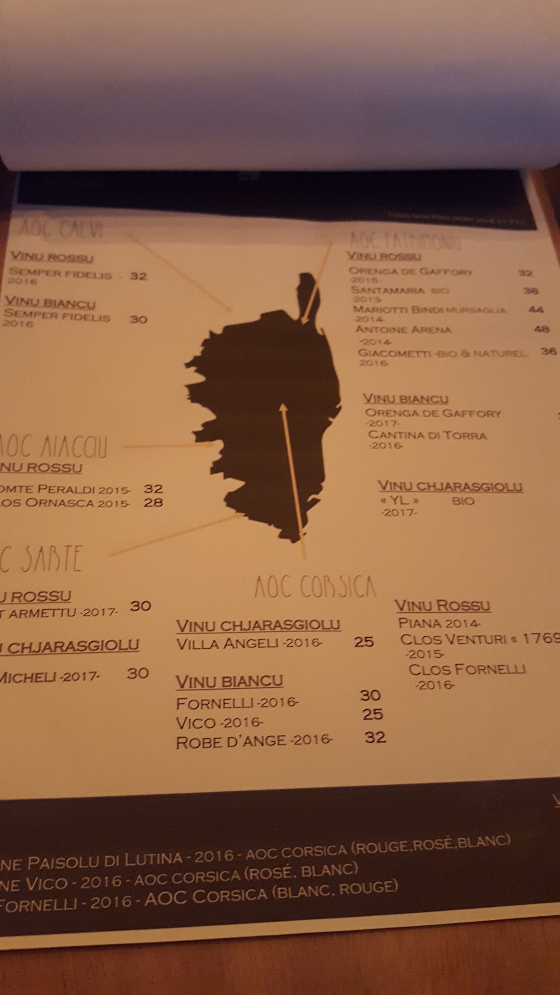 Un cadre qui sonne juste, des vrais produits corses avec des goûts peu communs, une équipe au petit soin et une belle carte de vins, je recommande la planche à partager avant de se jeter sur les croquettes de Minna et le poulpe!