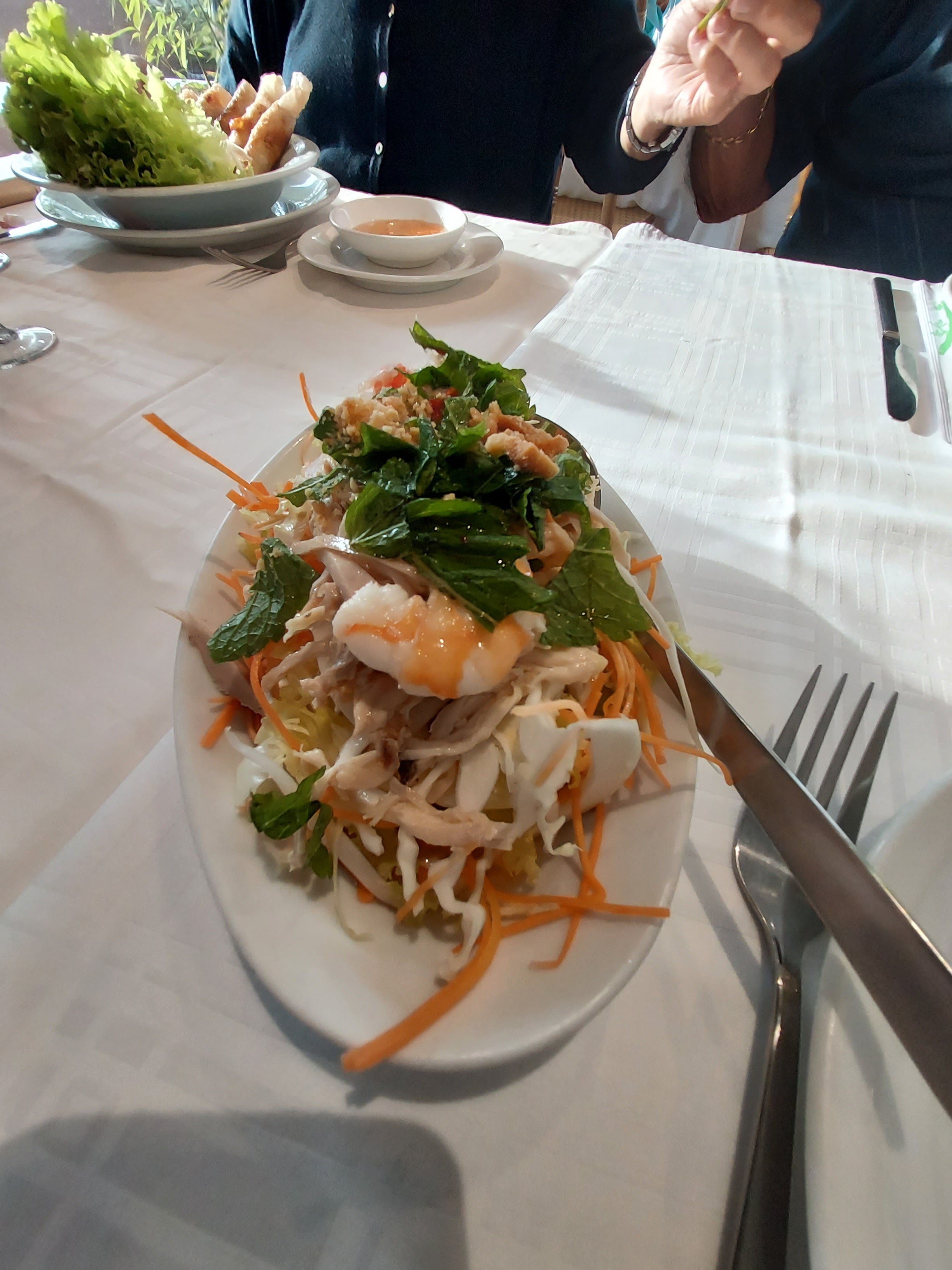 Le mot qui me vient en premier est fade. La farce des nems aux crevettes se compose juste de crevettes hachées grossièrement sans aucune saveur.Idem pour les vapeurs. Aucune herbe ni assaisonnement...... les plats sont simples dans la réalisation. Je ne peux pas dire que je me suis régalée. Je n'y retournerai pas.
