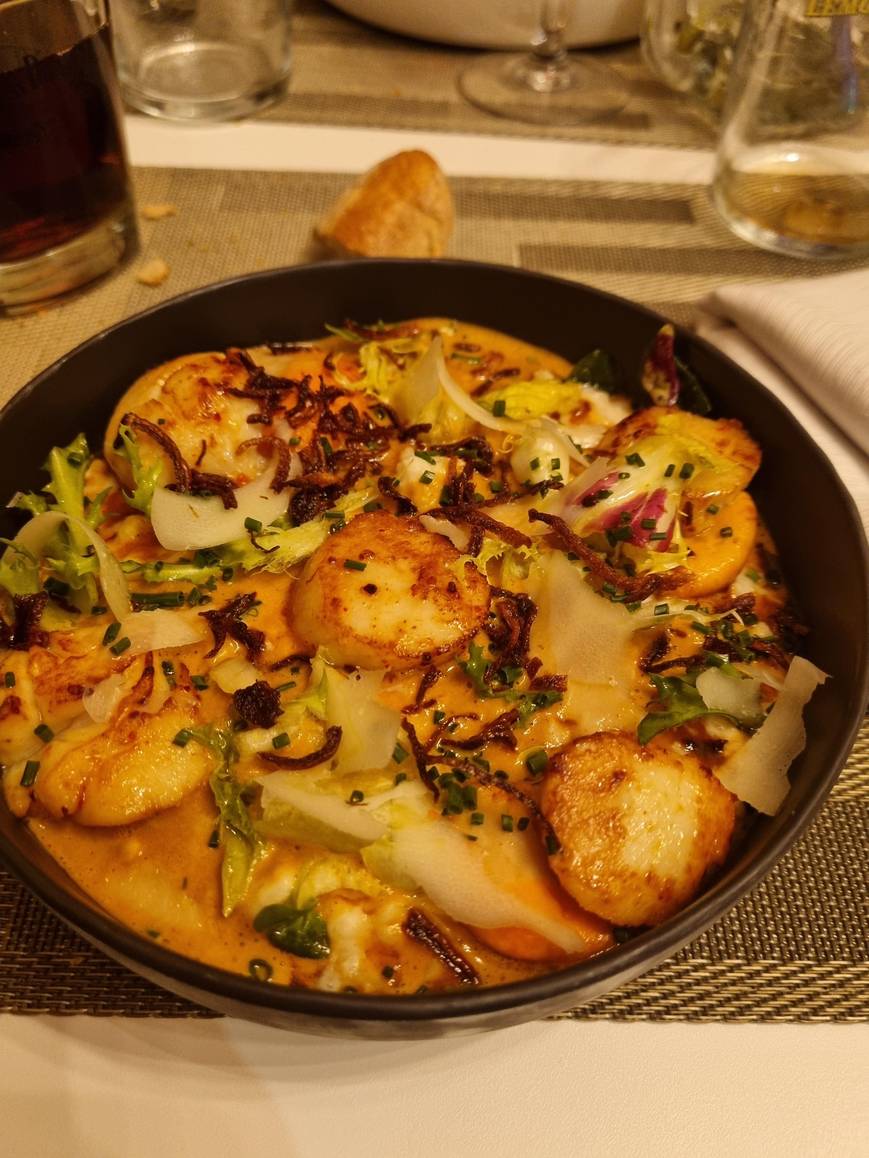Pour un soir de réveillon du 24 décembre 2023, très très bon repas! Le chef sait manier ses menus et un certain raffinement dans les saveurs !! Un sans-faute à l’équipe du restaurant qui a su gérer pour une salle comble !! Je reviendrai avec grand plaisir.