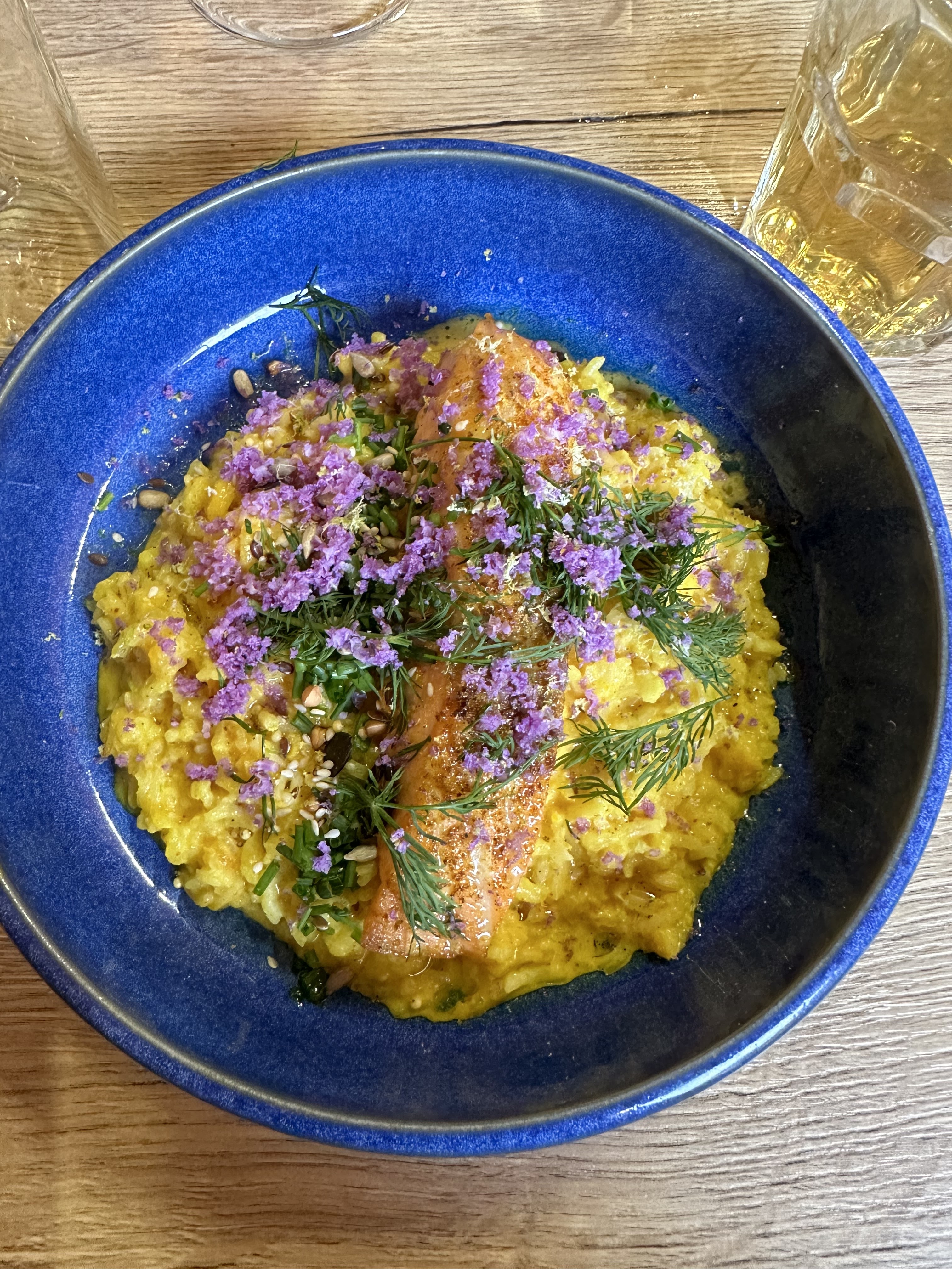 Nous avons mangé des huîtres et du vin, Comme deuxième plat nous avons pris ce saumon, Que dire, nous y retournerons certainement, tout est super bien