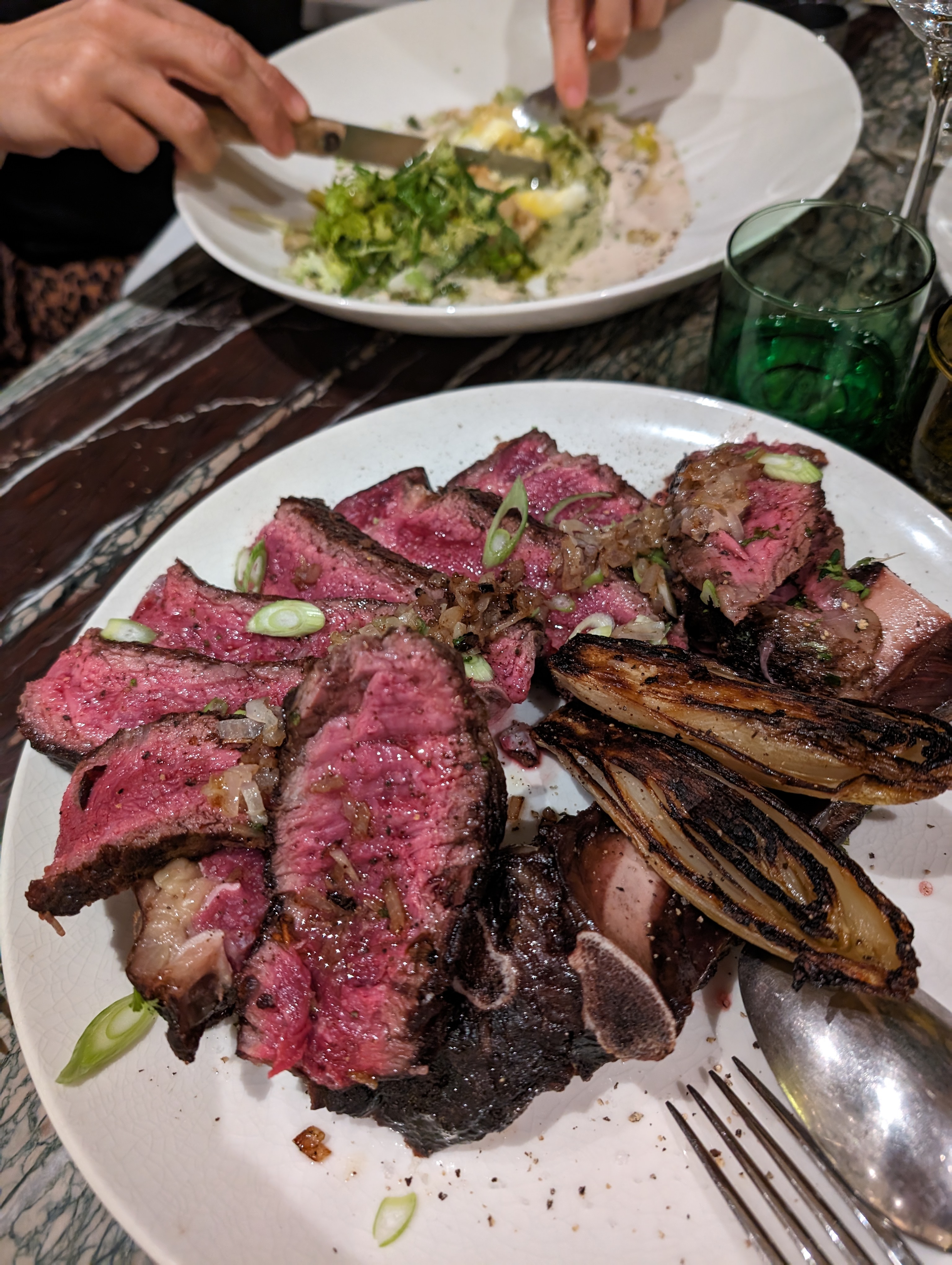 Vin glacé, commande une côte de veau bien cuite et j'ai un fillet mignon.