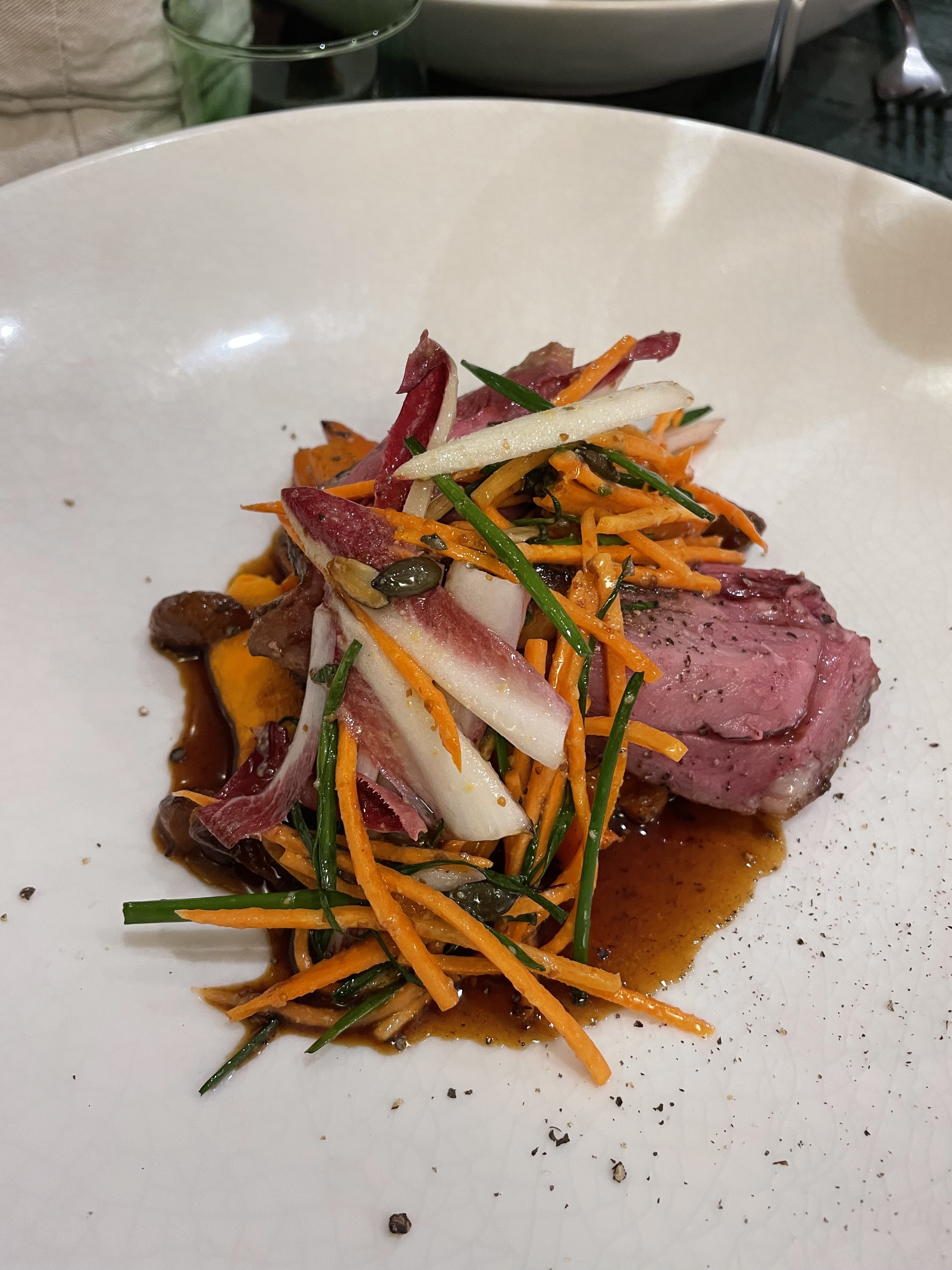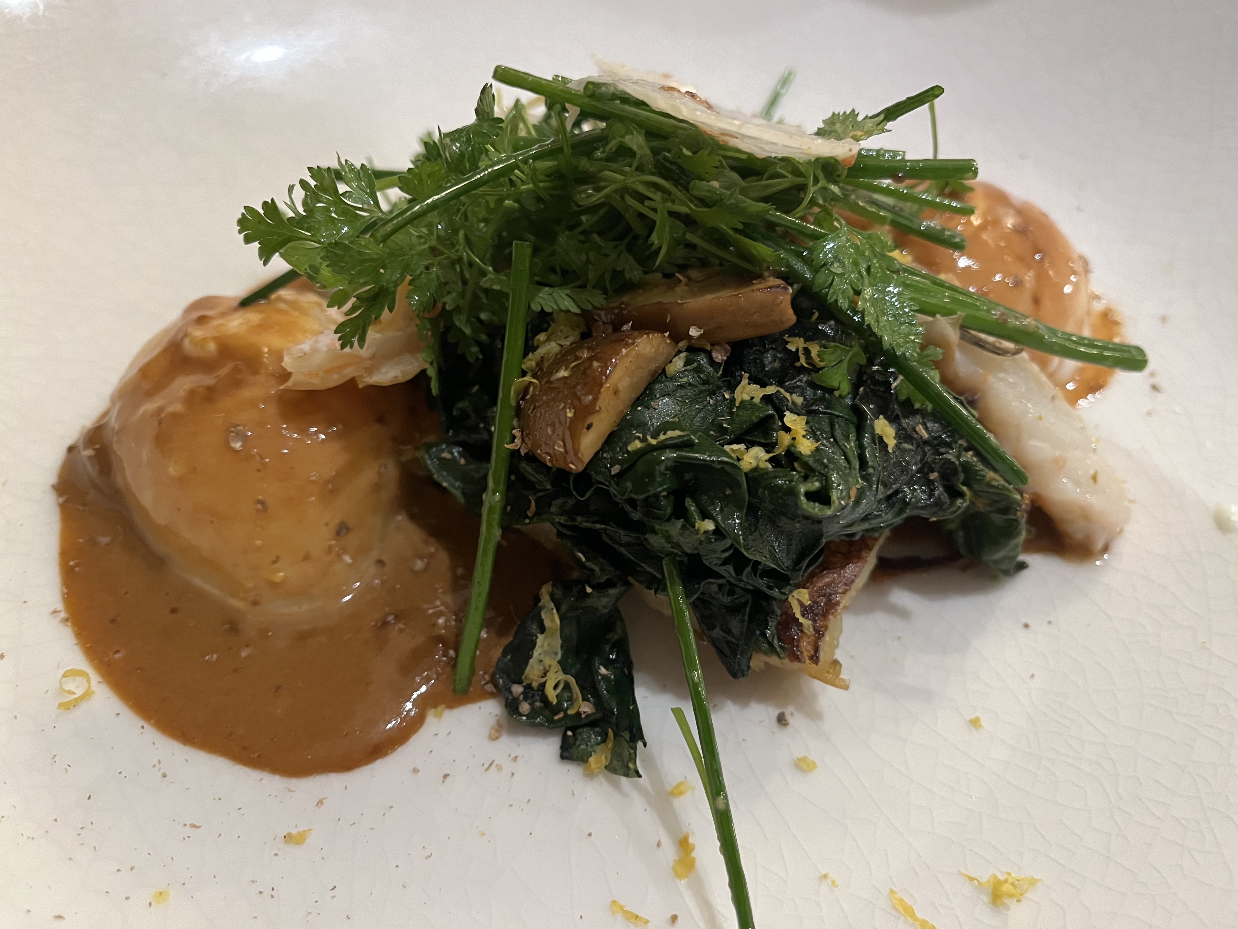 Cuisine délicieuse, service impeccable, ambiance discrète. Très bon moment, avant Noël