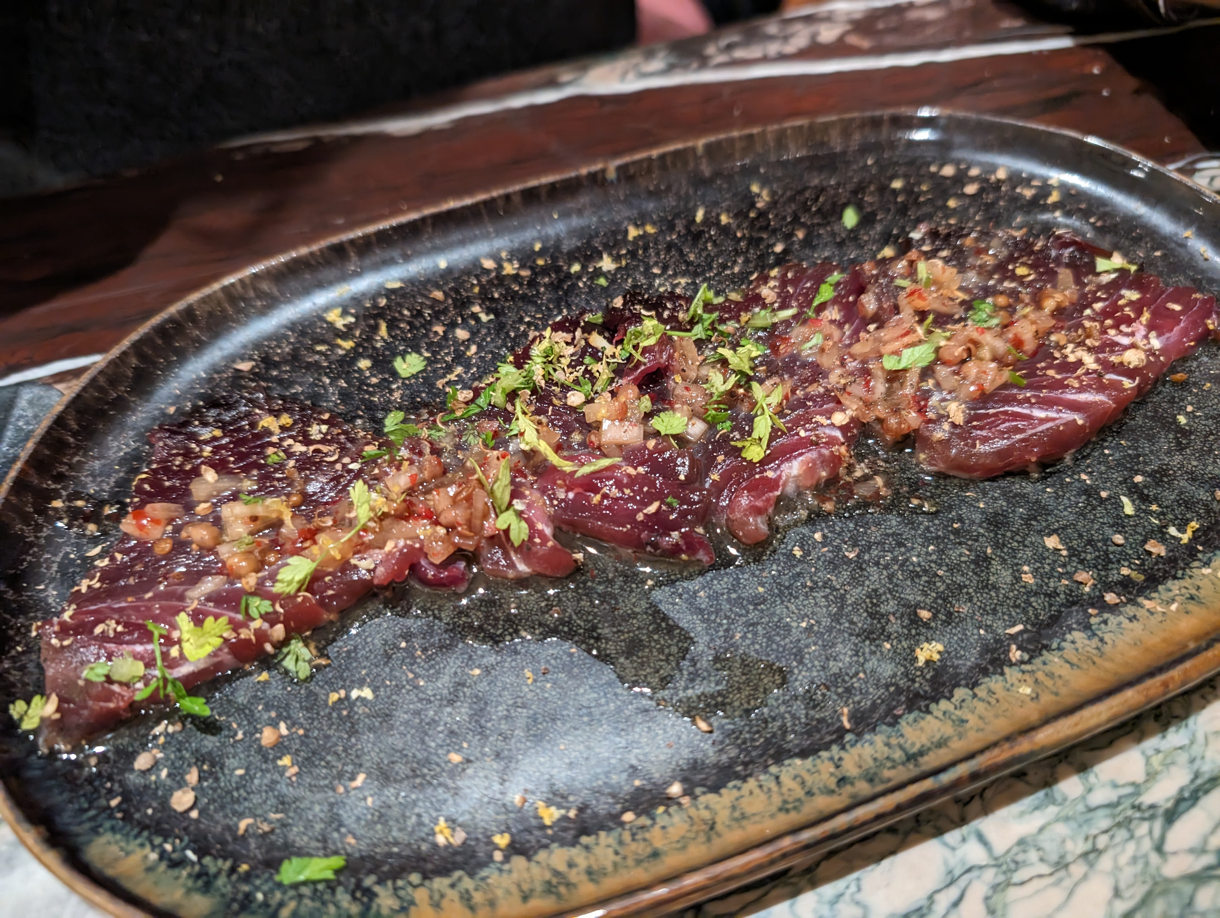 Un cadre attrayant mais nous avons été déçus de la cuisson de la viande (trop cuite pour du saignant dont ils recommandent pourtant la cuisson) et les plats étaient trop salés nous avons eu soif toute la nuit ! Service très avenant néanmoins