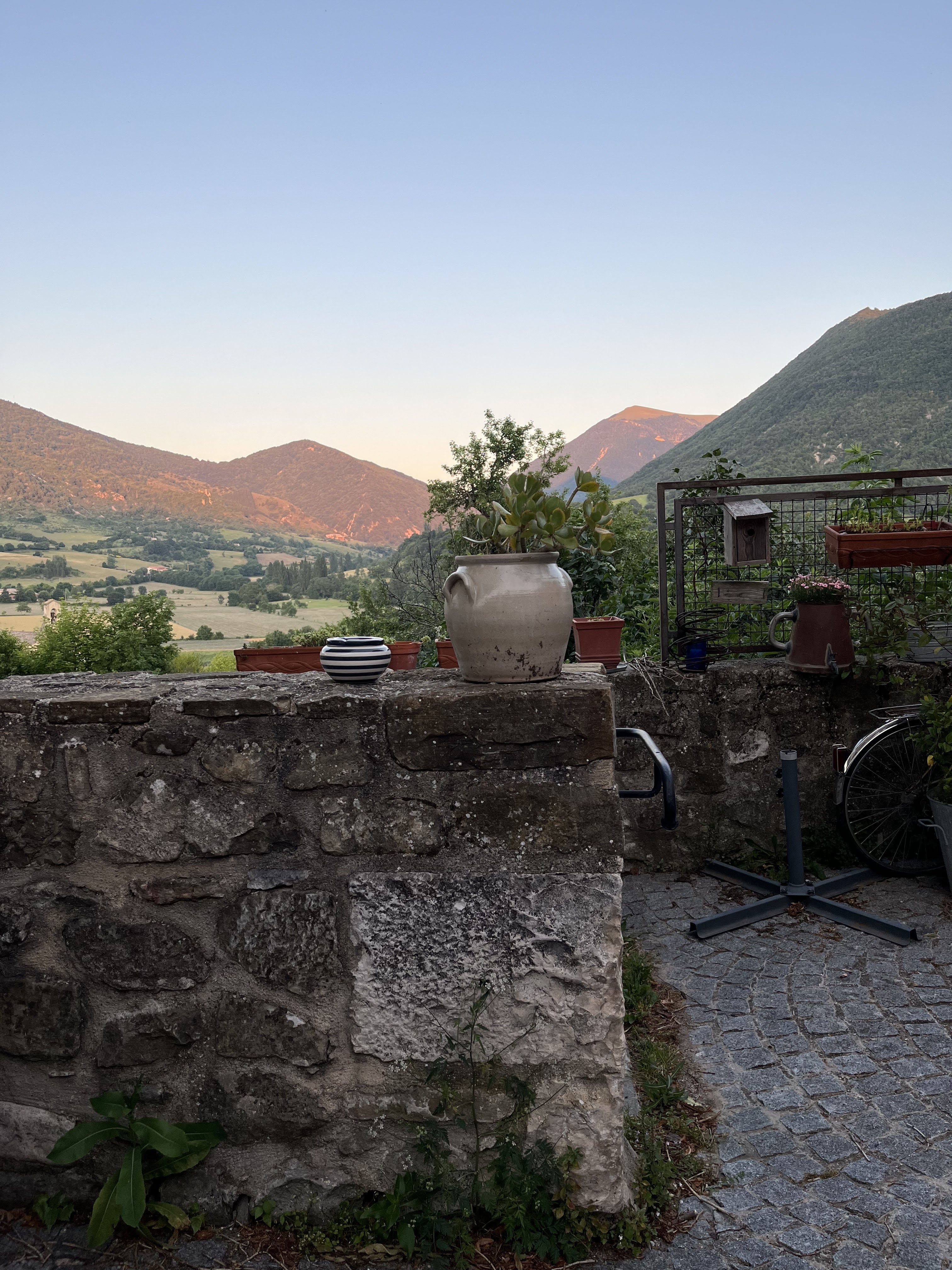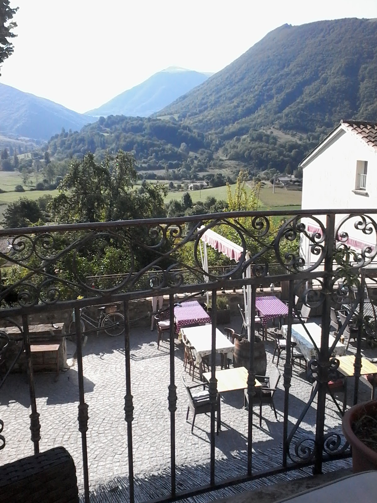Une vue de la terrasse magnifique sur les montagne en contrebas il y a une fermé avec plusieurs centaines de chèvres le cadre est splendide!!Mais voilà qu'arrivent les assiettes avec une cuisine raffinait goûteuse tape à l'oeil de très belles assiettes joliments présentaient une possibilité de prendre du vin au verre et surtout du bio, du local, de l'authentique!!!merci encore à cette gentille serveuse et l'équipe en cuisine pour ce déjeuné !!