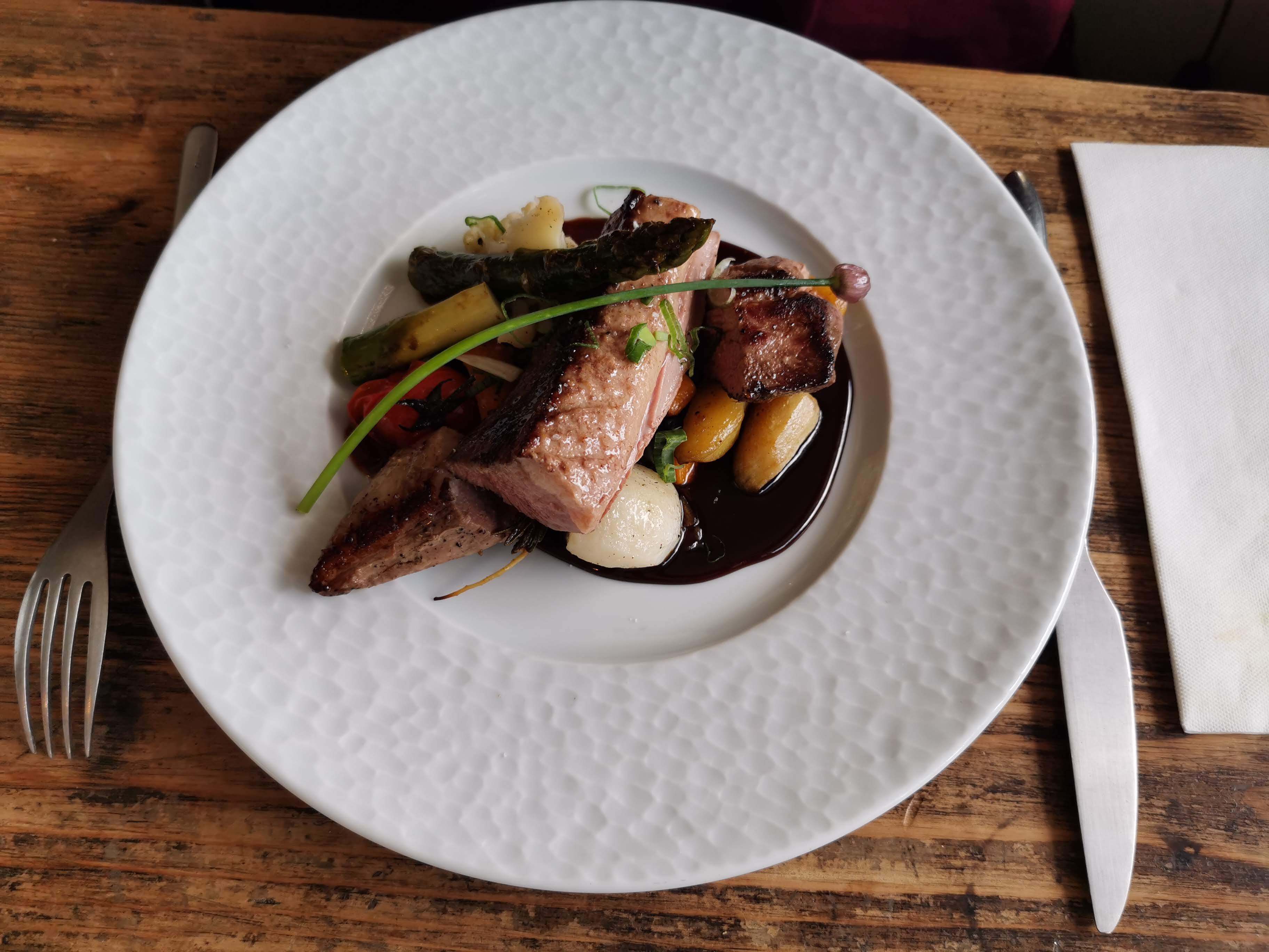 Points positifs : cadre, déco très sympa, produits frais Points négatifs : plats affichés à la carte manquants, rapport qualité prix negatif (25€ le plat de risotto d’épeautre ou encore la cuisse de canard confite, 32€ la tranche de porcelet), longue attente, cuissons mal maîtrisées (gnocchis trop cuits, cuisse de canard très sèche, pâte feuilletée du dessert pas cuite)