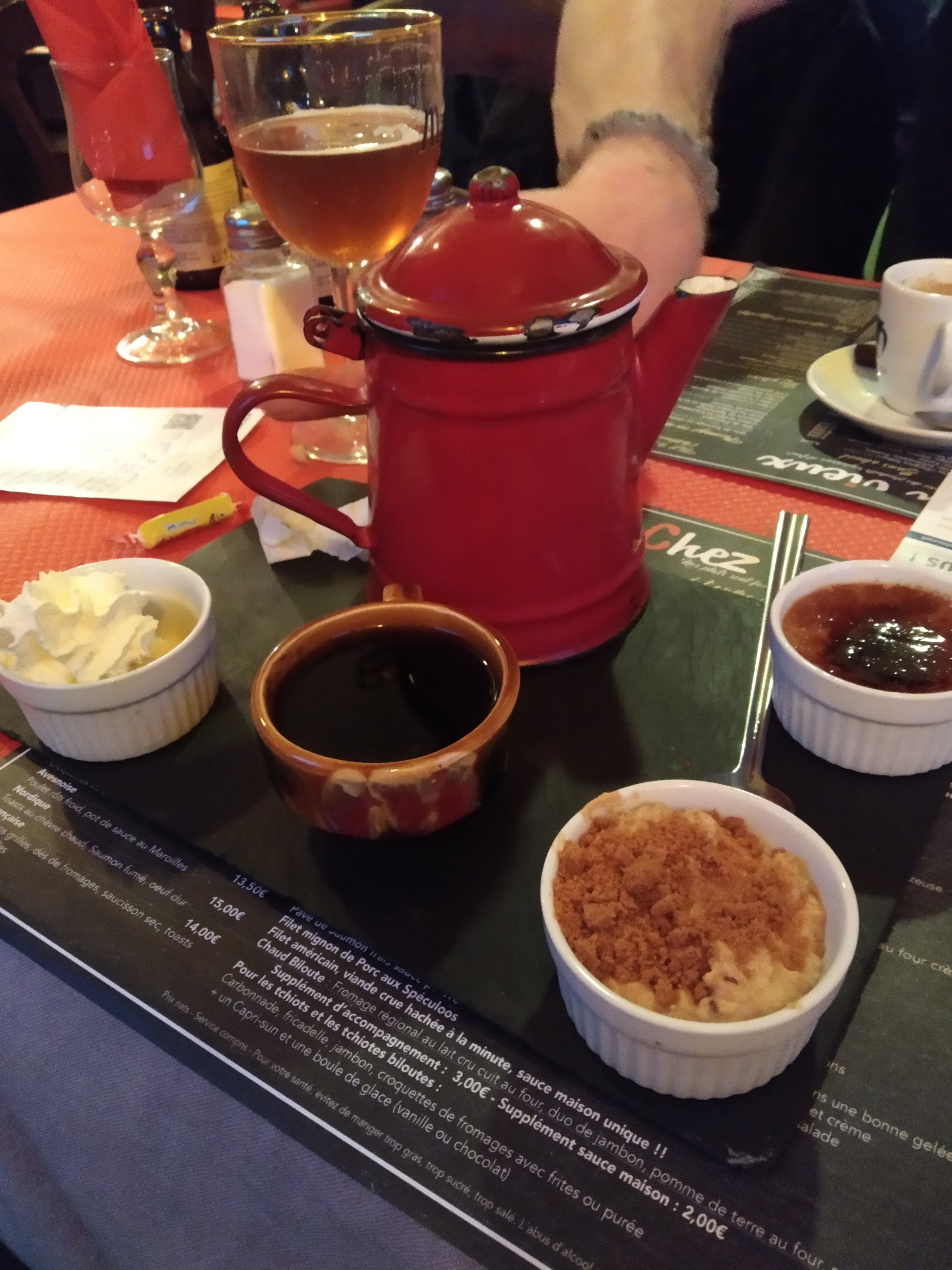 Déjà à notre entrée pas de sourire ! Bon c'est pas grave. Ensuite les serveurs très bien par contre la serveuse pas sourire peut-être qu'elle est trop à fond dans son boulot ! On a pris une carbonade flamande qui ont été servi dans un service vaisselle sympathique 😊parcontre dommage pour un plat en sauce j'ai du en demander et un morceau de carottes en plus pour le goût et l'œil serai était mieux. Bon le café gourmand pareil pour la vaisselle et la cafetière ancienne rien à dire pour les petits pots ''gourmand'' pas goûteux du tout 🙄 la mousse au chocolat entre liquide et un semblant de mousse au dessus dommage ! On est passé à la caisse et bien pas de tout c'est bien passé '' rien encore une fois pas de sourire on à voulu essayer c'est fait on y reviendra plus.