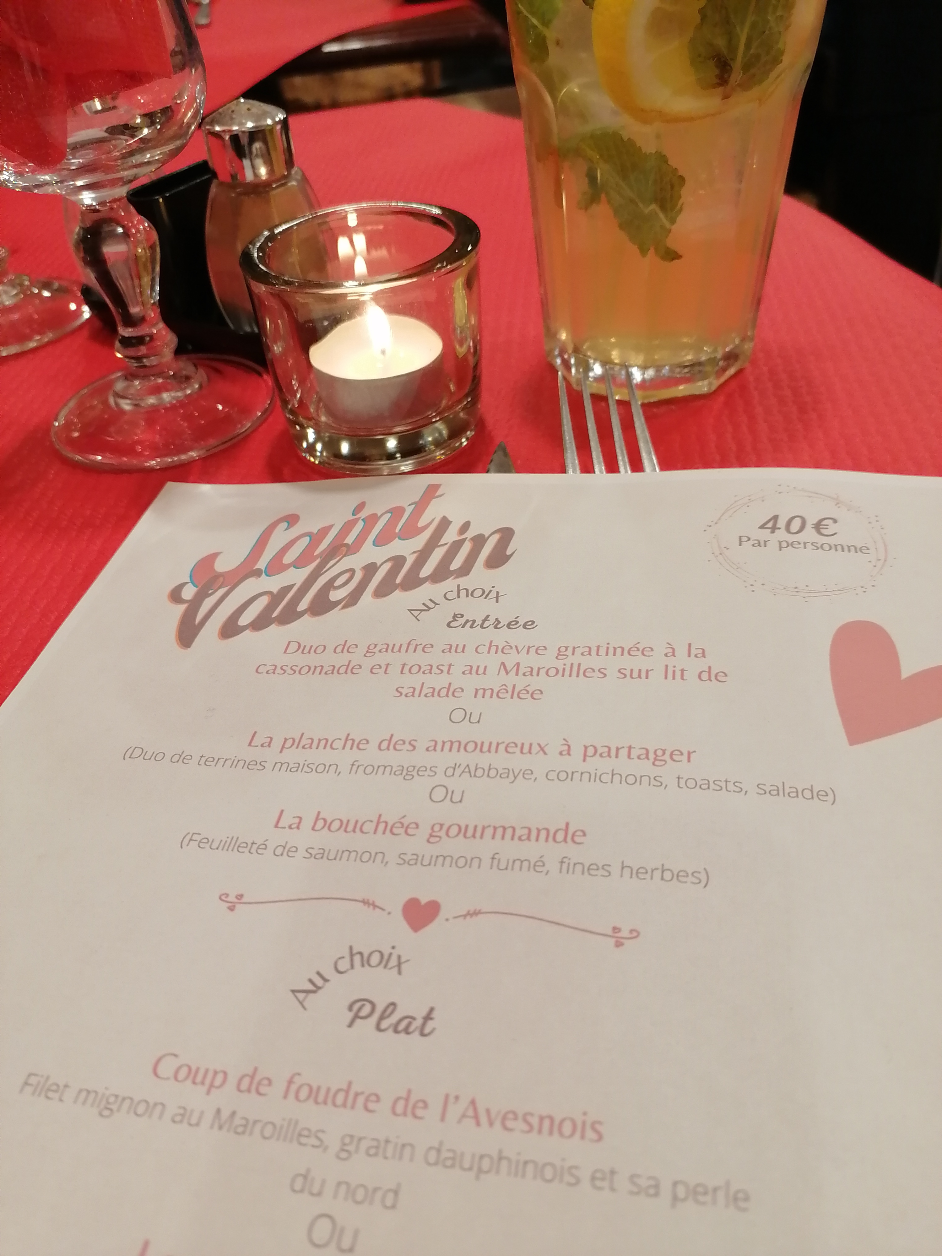 Super repas pour la Saint Valentin, le repas excellent, le personnel sympathique qui nous parle chti avec beaucoup d'humour. Je le conseille et le recommande. Réservez les places établissement très fréquenté, c'est normal il est super ce restaurant.