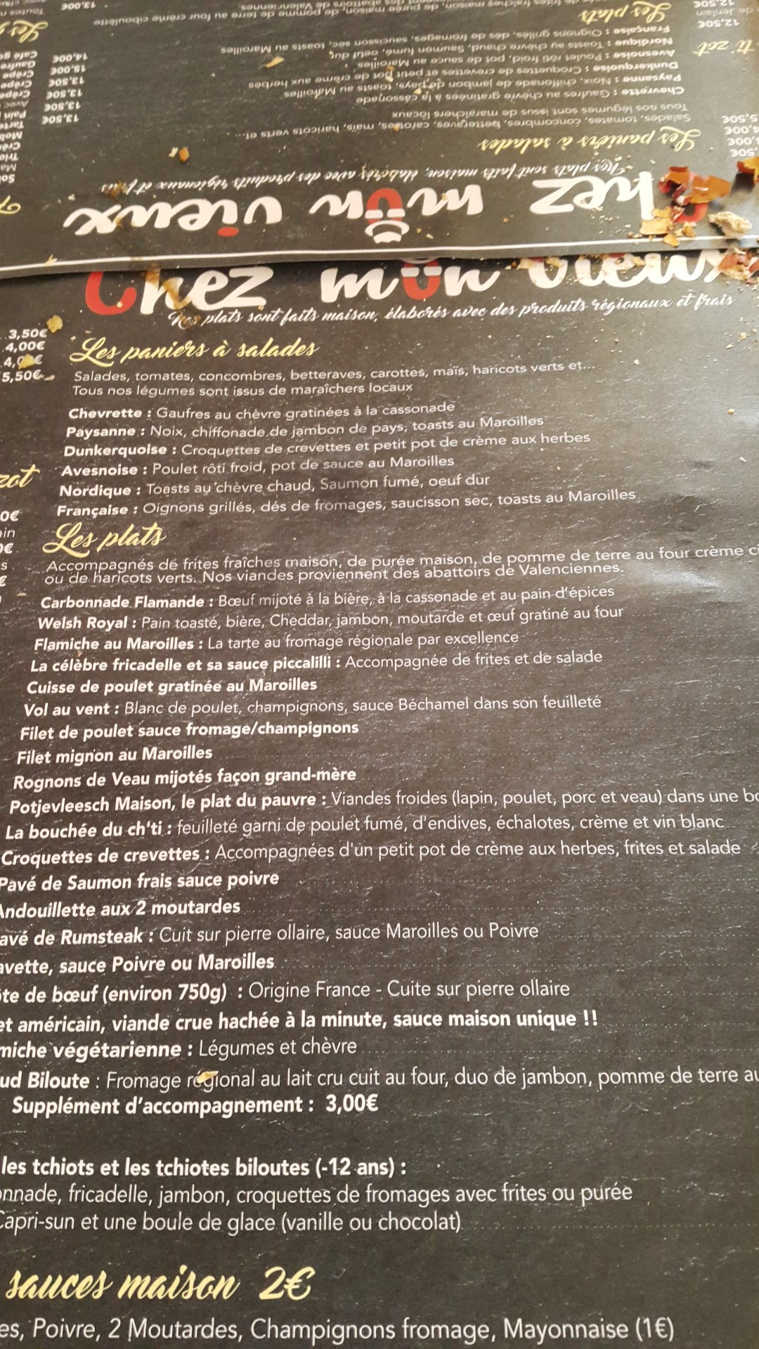 Venant du Sud, j'ai dégusté les plats typiques du nord Chez mon vieux, et c'était délicieux ! Plats généreux en plus ! Je recommande :)