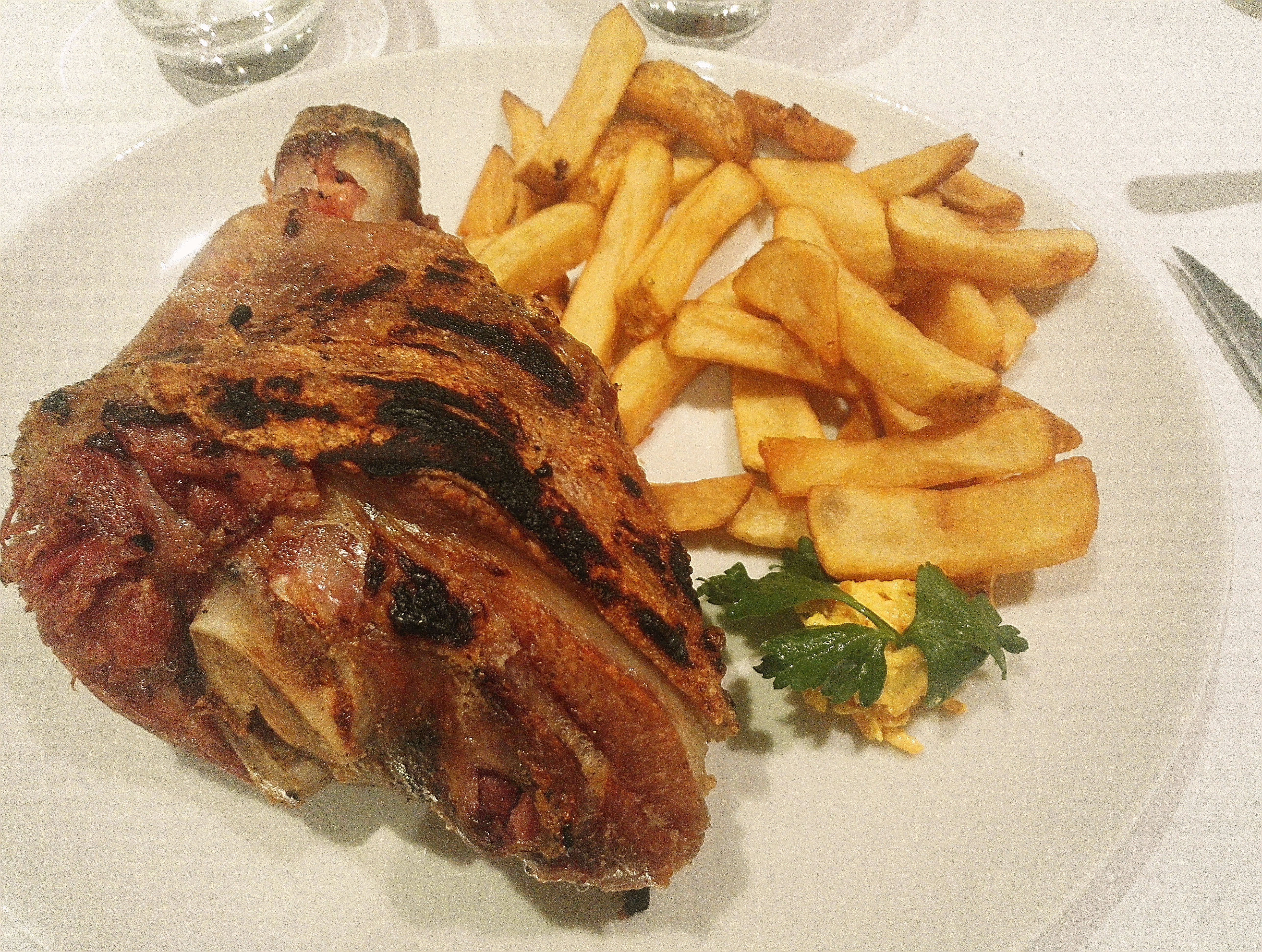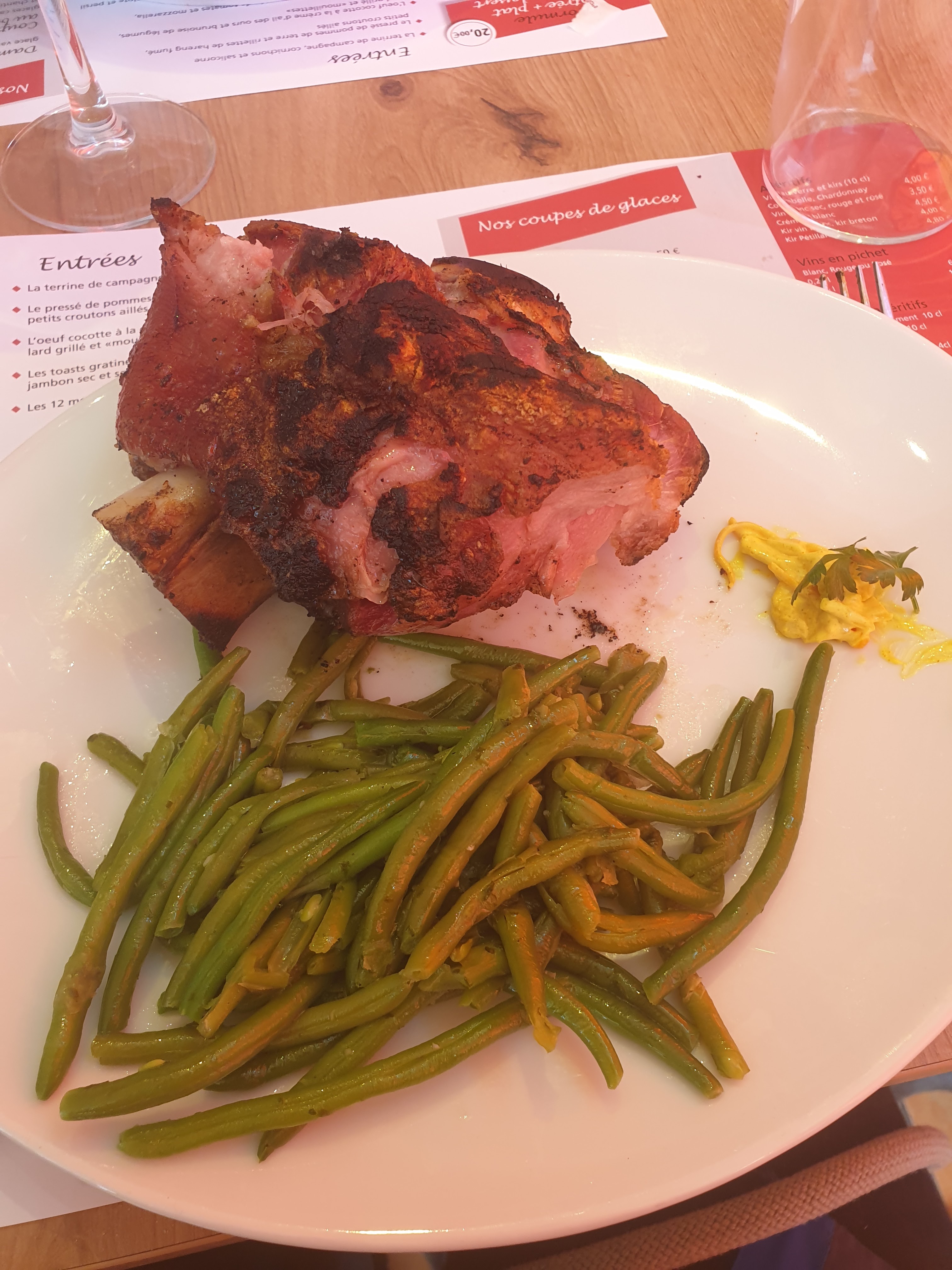 Je suis venue pour la deuxième fois récemment, à un an d'intervalle, et j'ai repris le plat phare de la maison, le fameux jarret de porc, à conseiller pour les gros appétits ! La viande est si tendre que l'on a à peine besoin du couteau pour la manger. En revanche un peu plus de frites aurait été appréciable - mais j'avais déjà assez à manger dans mon assiette donc ça va. Les prix des plats de la carte permanente sont plus que raisonnables.
