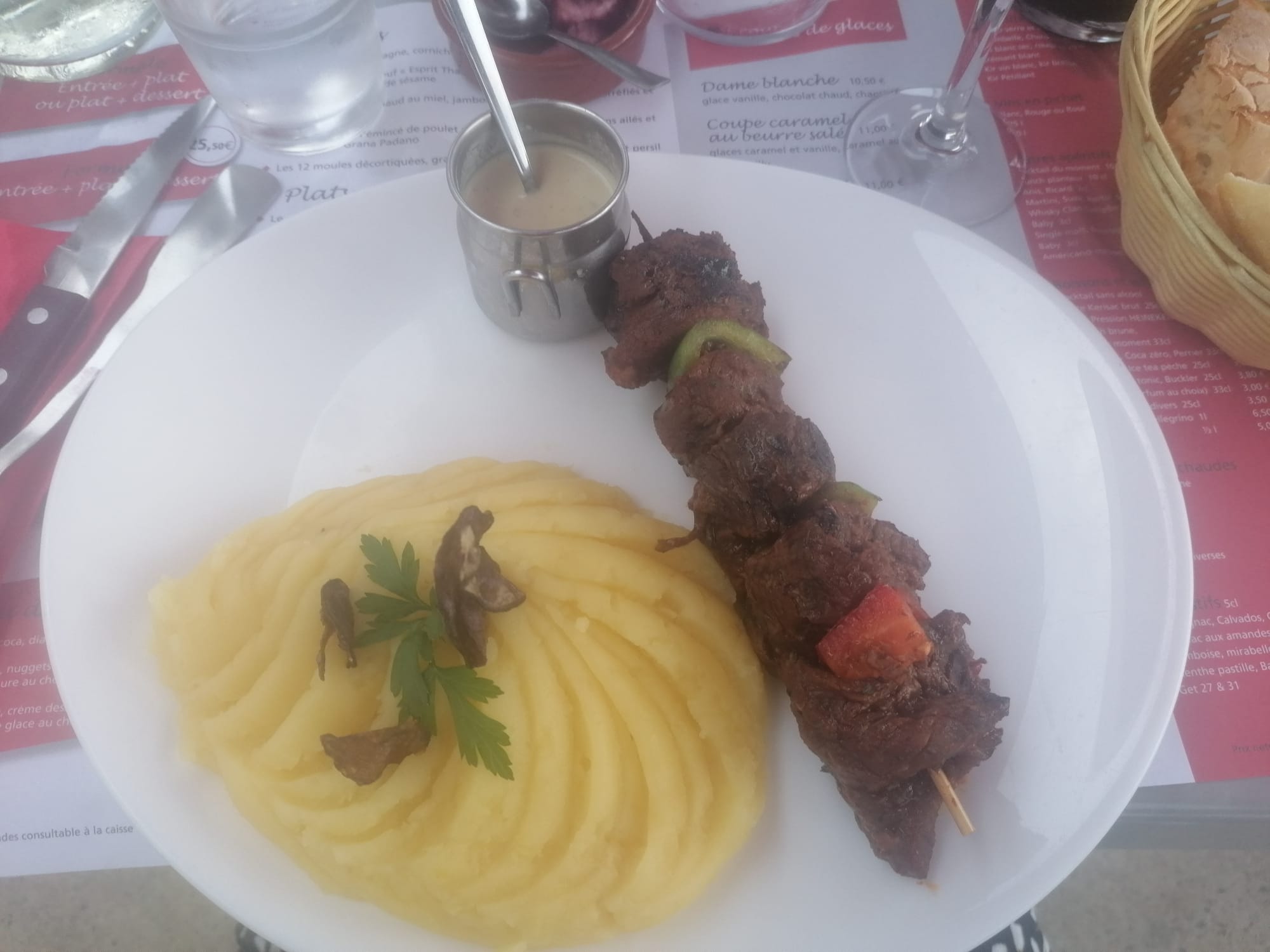 Pas doué dans les sauces. C'est un petit 4 pour ne pas mettre 3, peut mieux faire ! Les moules façon escargot, sauce insipide. La pomme de terre pas bien cuite et crème sans goût et liquide et pas assez pour la pomme de terre. Le jarret était bon, le mien très gras et je ne mange pas le gras. Dessert bon, service très bien.