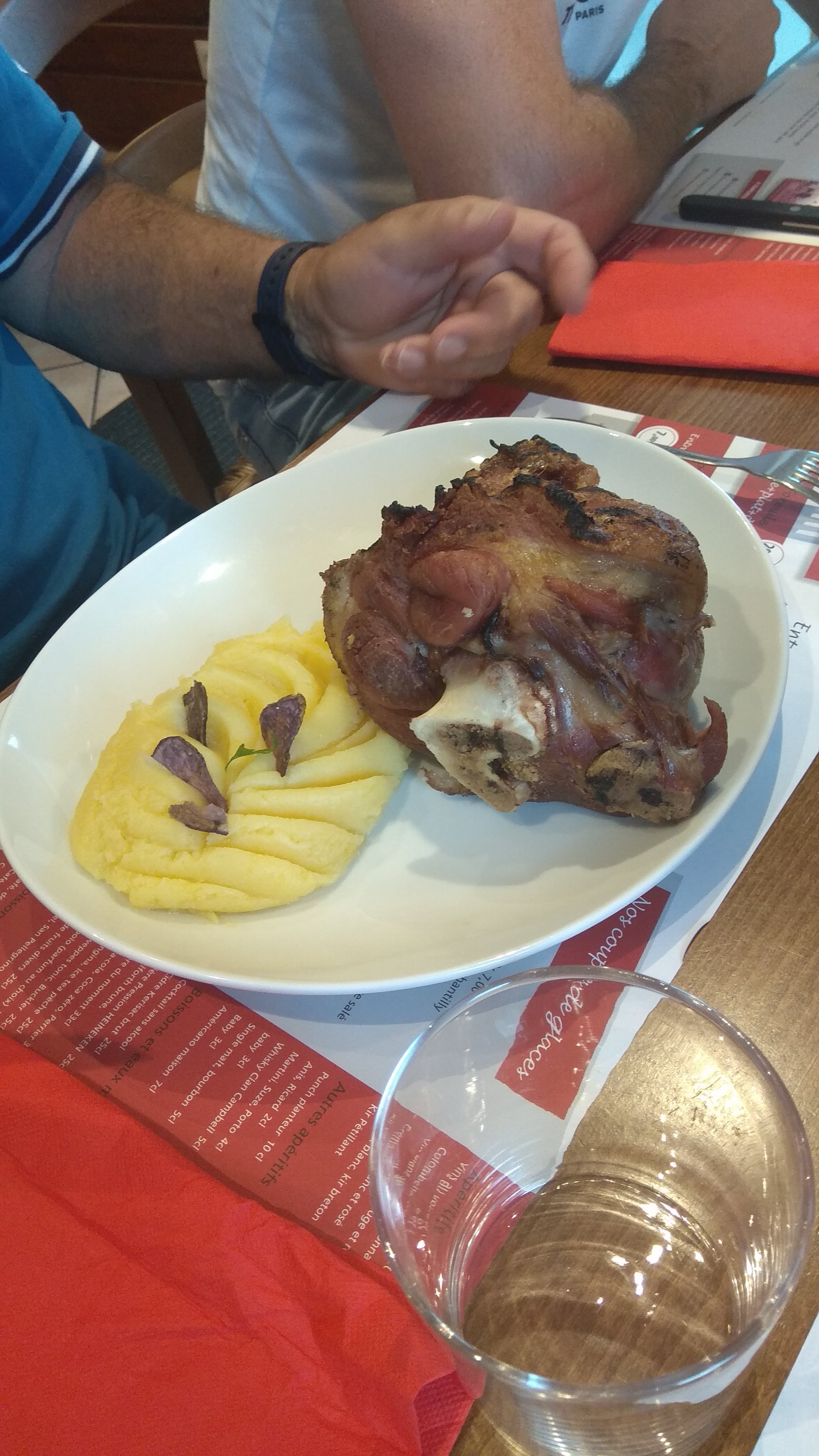 Comme son nom l'indique, l'établissement doit sa renommée au jarret de cochon grillé, avec ses quelques 500g de viande savoureuse, figurant au menu (plat seul ou en formule 14,50€) parmi d'autres possibilités accompagnés d'une purée maison, d'une pomme de terre cuite sous la cendre notamment. Diverses formules possibles, desserts maison, coupes glacées, avec du personnel très agréable et efficace. Prix raisonnables pour un repas d'excellente qualité.