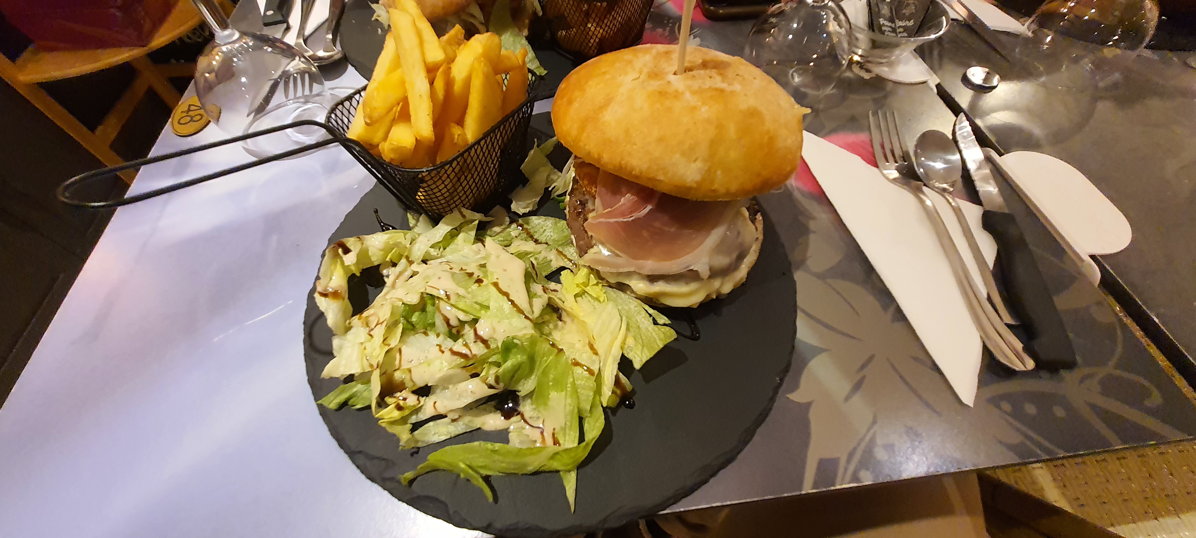 Très bon accueil même si nous sommes arrivés très tard après un vol en montgolfière … le repas était délicieux et fait maison … supers burgers frites 👍