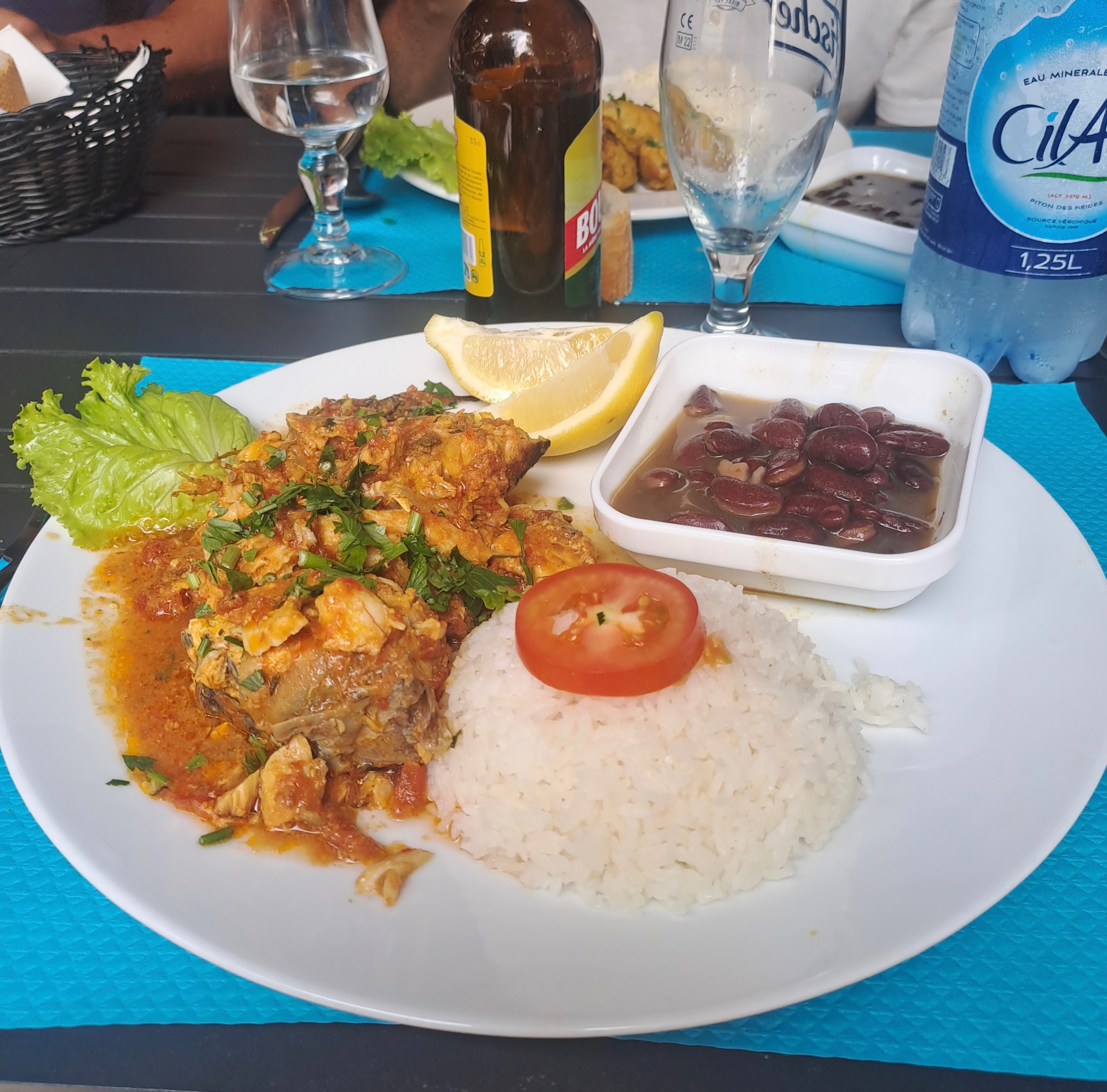 Bon restaurant de Cilaos avec les traditionnelles lentilles. a venir en famillebou entre amis.