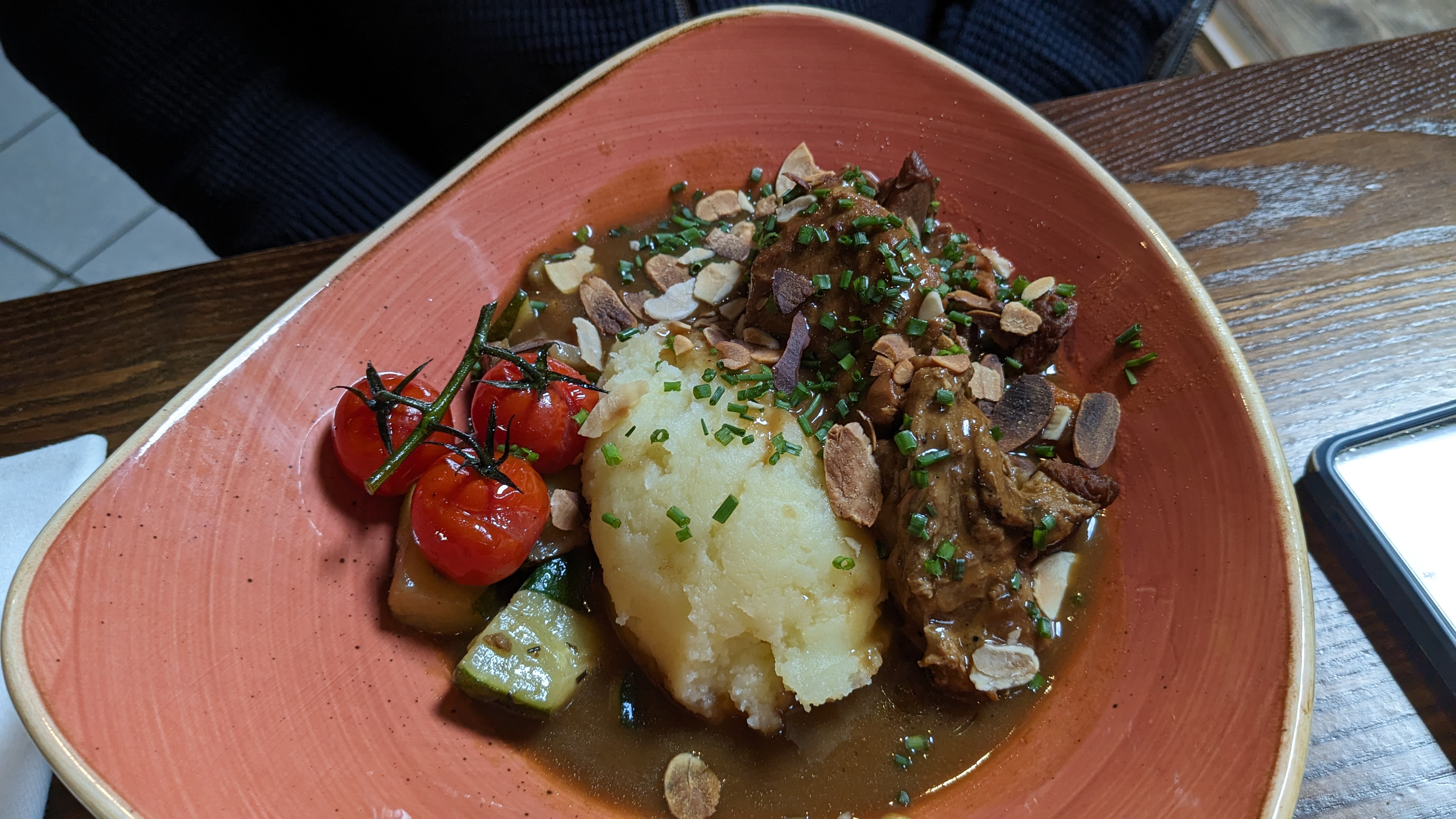 Très bon, belle décoration (terrasse jardin a tester en été, en hiver c'est joli à regarder depuis l'intérieur) et très bon accueil. J'ai testé le velouté de butternut aux noisettes et foie gras, très bien, et l'entrecote irlandaise maturee sur l'os, délicieuse.