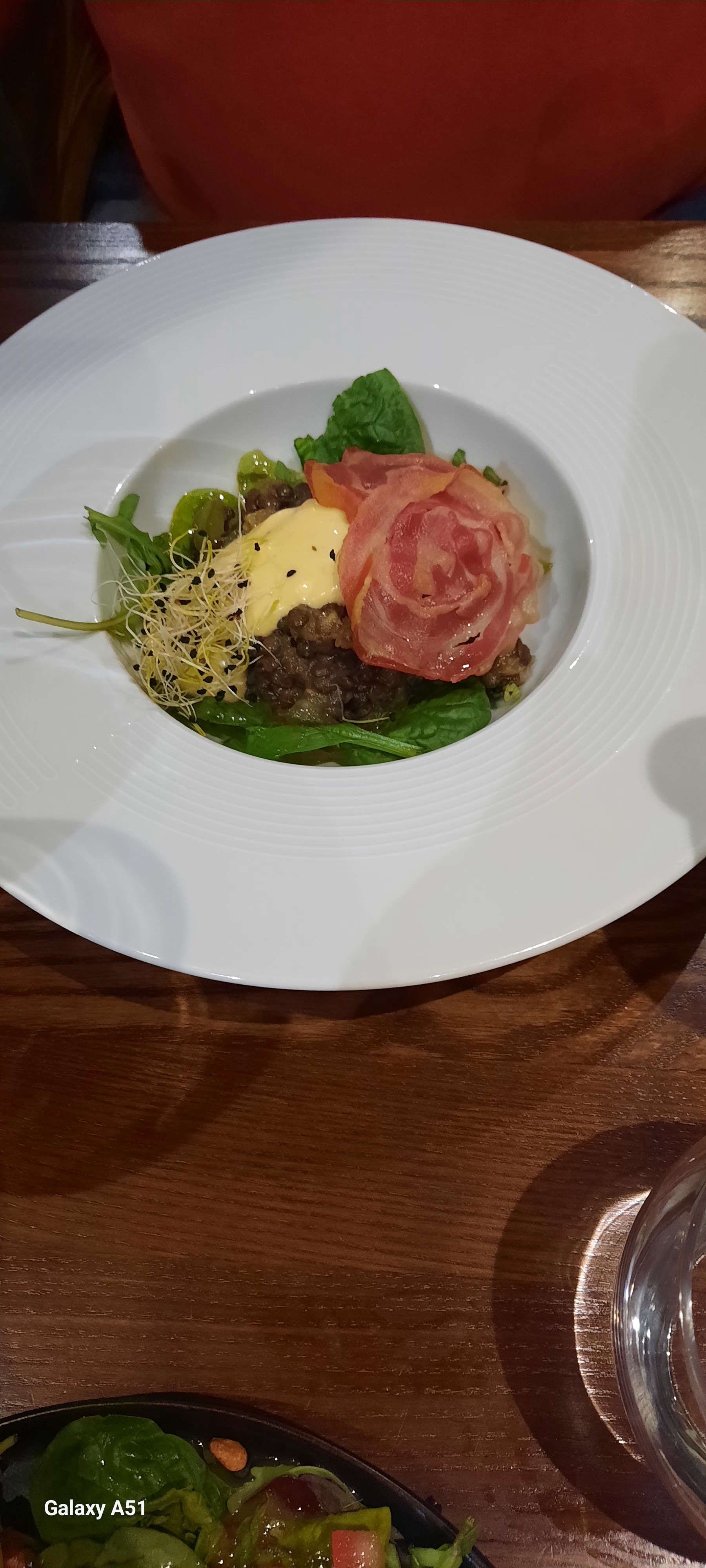 En week-end dans la région pour visiter le château de Chantilly à l'occasion de notre anniversaire de mariage, nous avons fait le détour par Senlis en raison des avis positifs. Service attentionné, cadre agréable et un espace raisonnable entre les tables. Cuisine maîtrisée et des portions satisfaisantes, un bon équilibre des saveurs. Saumon gravlax, foie gras, burger et en final un moelleux chocolat cacahuètes excellent. Juste une petite déception sur le faux-filet de Salers, un peu trop cuit et pas assez tendre. Mais très satisfaits dans l'ensemble et une addition correcte au regard de la qualité.