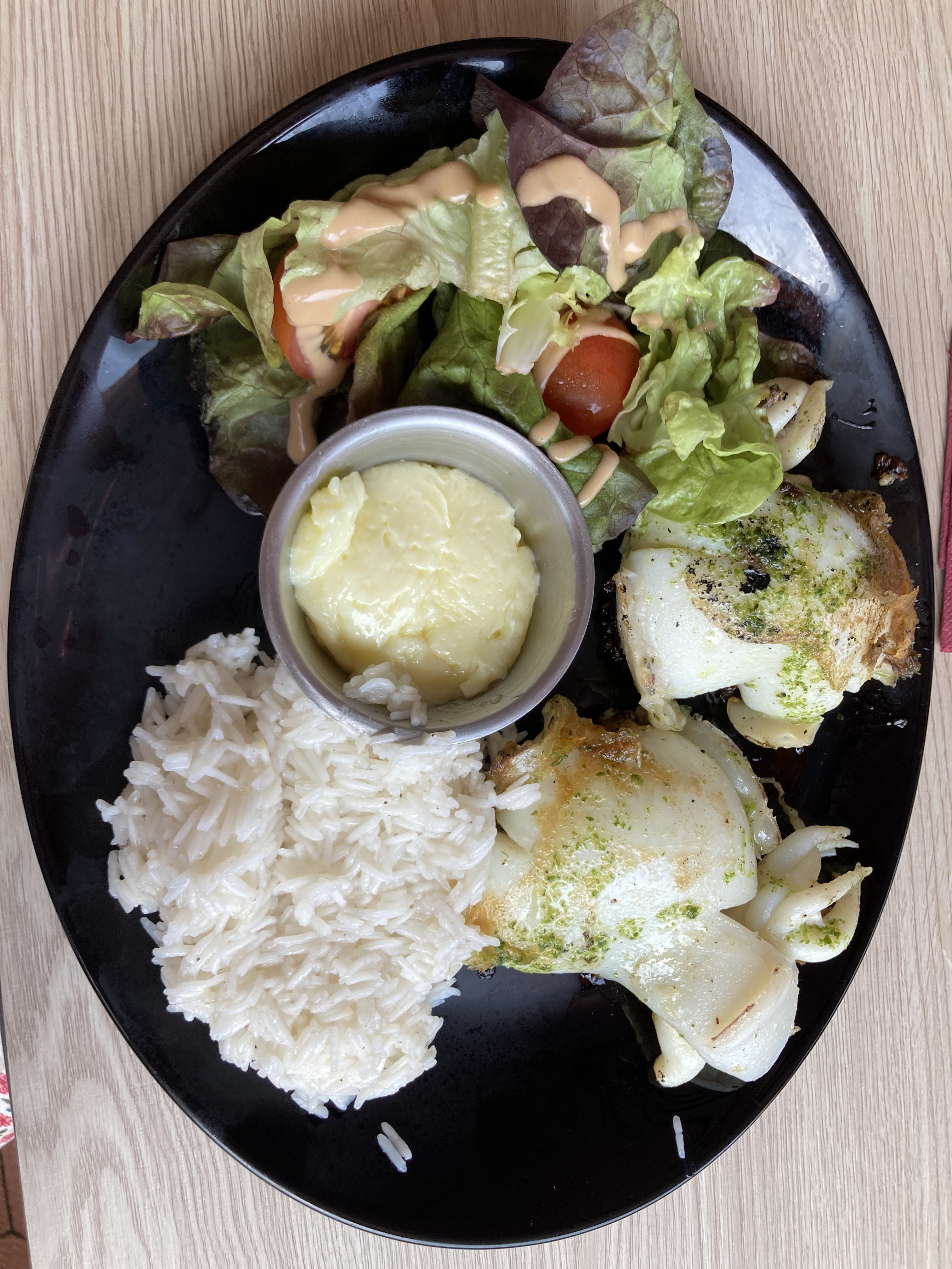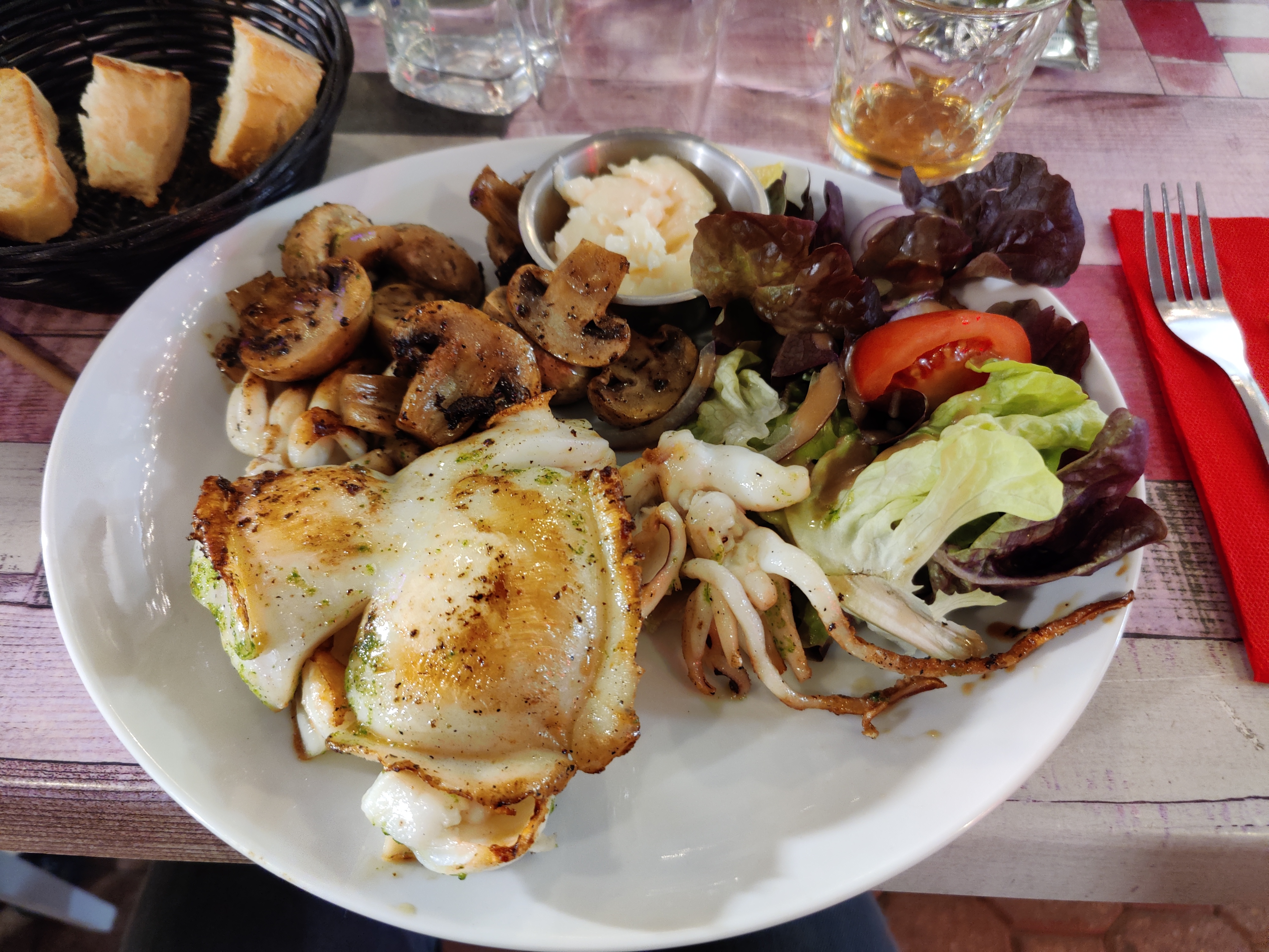 Sèche à la plancha succulente , pavé de saumon délicieux et burger idem!Une bonne trouvaille dans une petite ruelle sympa en bord de plage ,atmosphère chaleureuse et détendue.Proprietaires accueillants et aux petits soins.🙂🙏