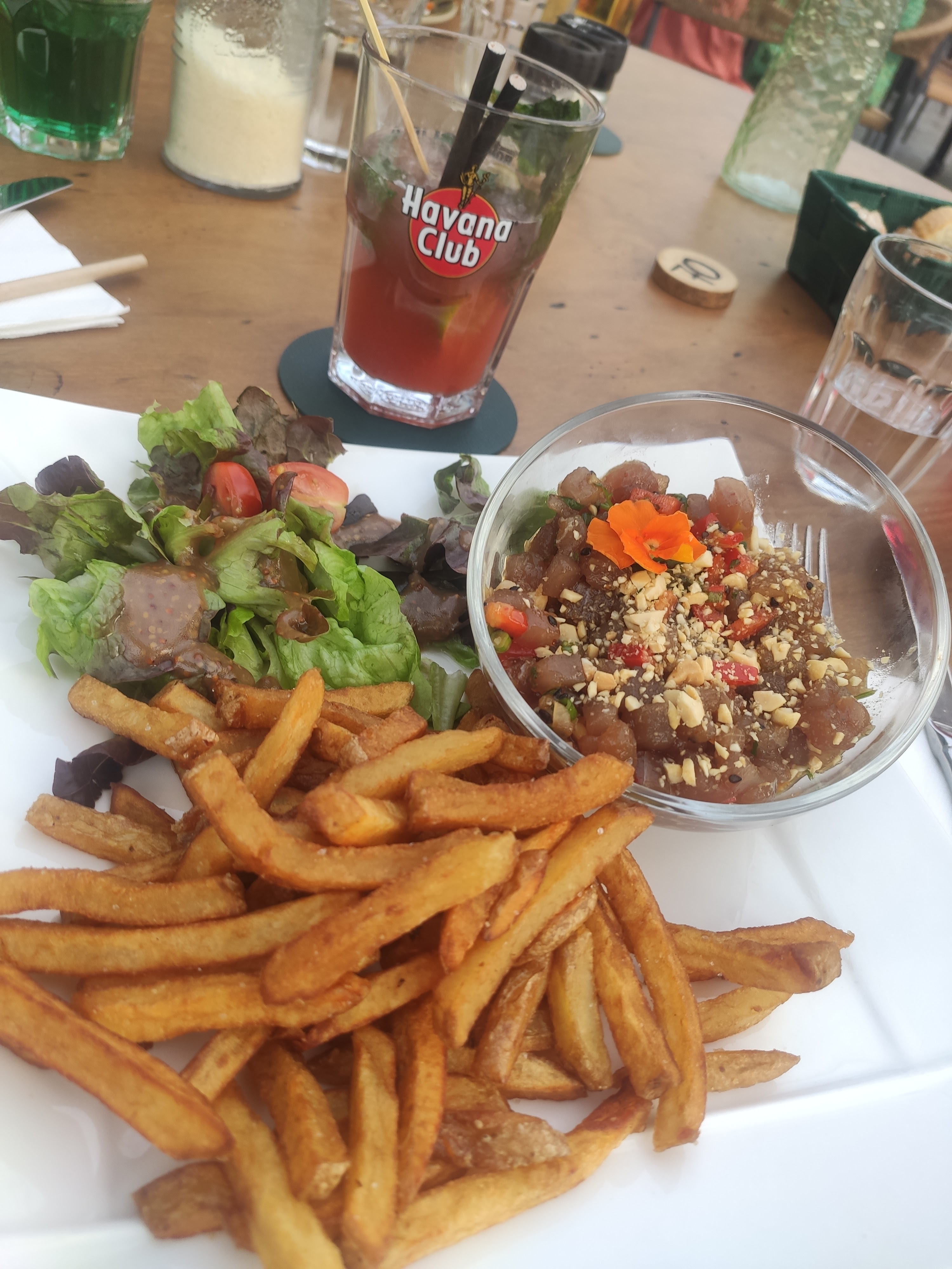 Pour une première fois j'étais agréablement surprise. Cadre agréable. Nous étions 3, avons mangé dehors. Service rapide. Salade copieuse (de la mer), tartare de saumon bien préparé. Je recommande.