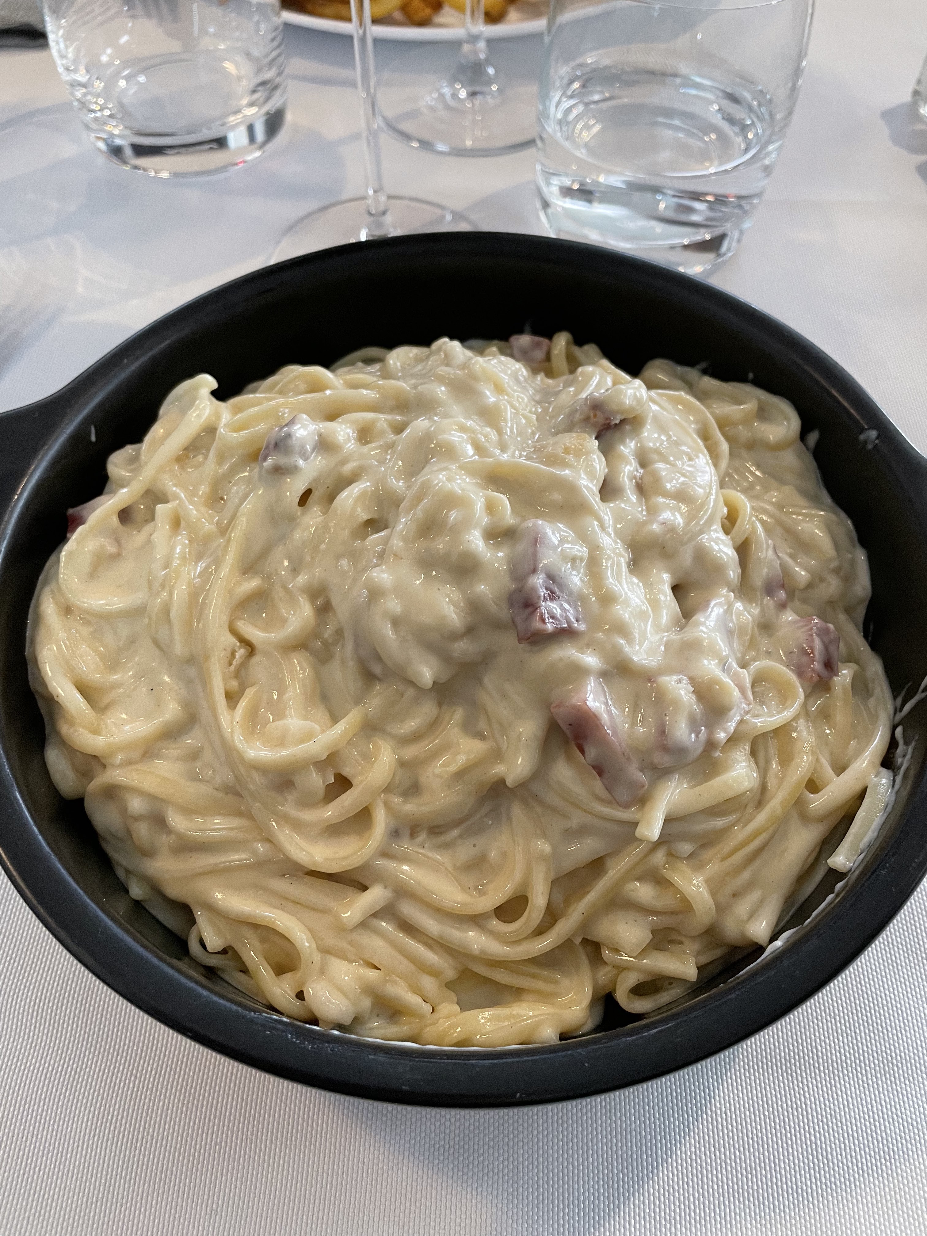 Nous avons été très bien accueillis et le plus important nous nous sommes régalés, pour cette première fois nous avons dégusté les linguine dans la meule de parmesan et c’était un régal ! Les assiettes sont copieuses et pour les petits estomacs pas de problème nous pouvons partir avec un doggy bag :)