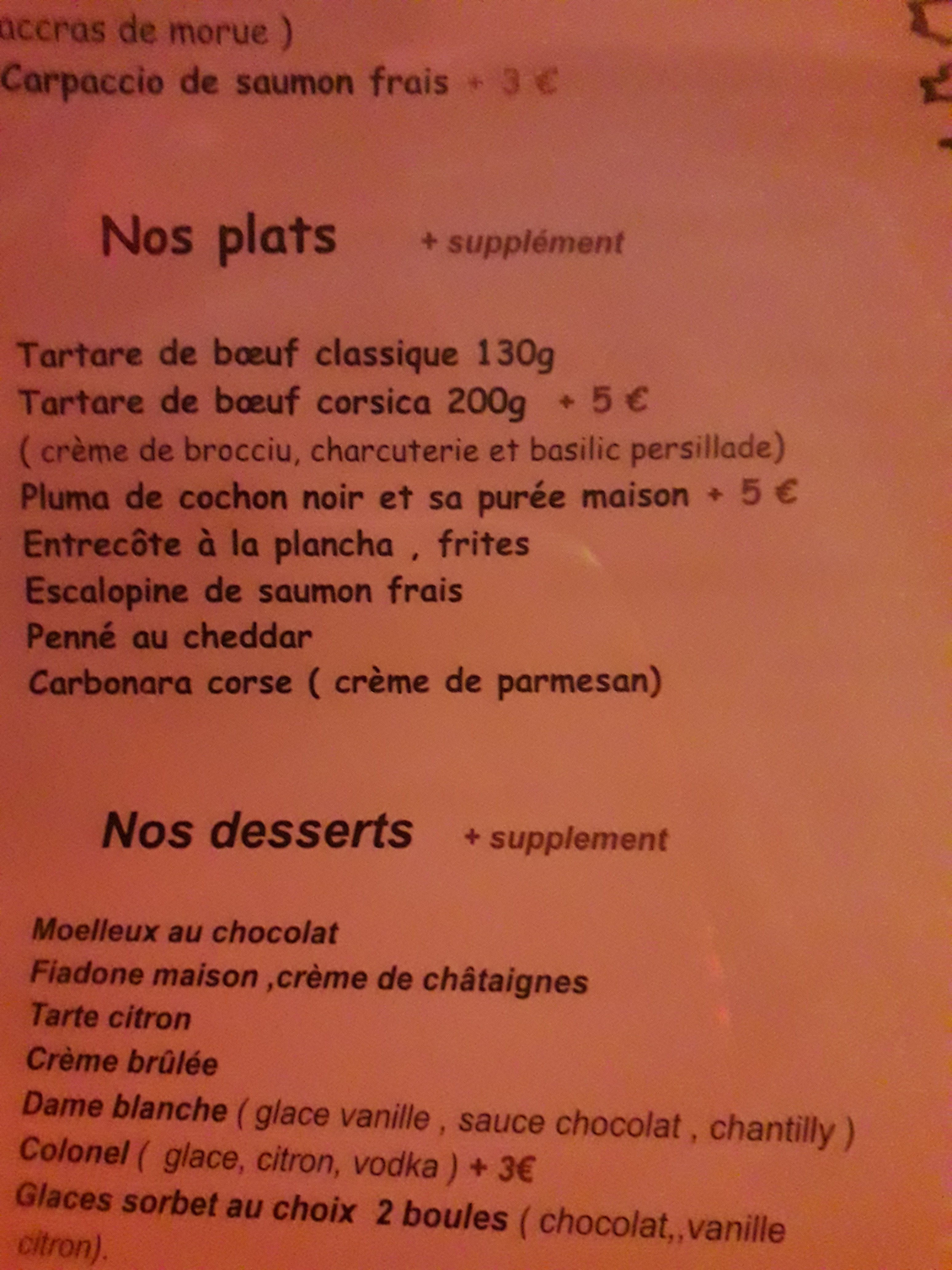 Très bonne soirée, le service est rapide et le rapport qualité prix est correct. Bien placé sur le port pour ce promener, propose viandes, mer et spécialités corses. On a passé un bon moment, on vous le conseil sans hésitations.