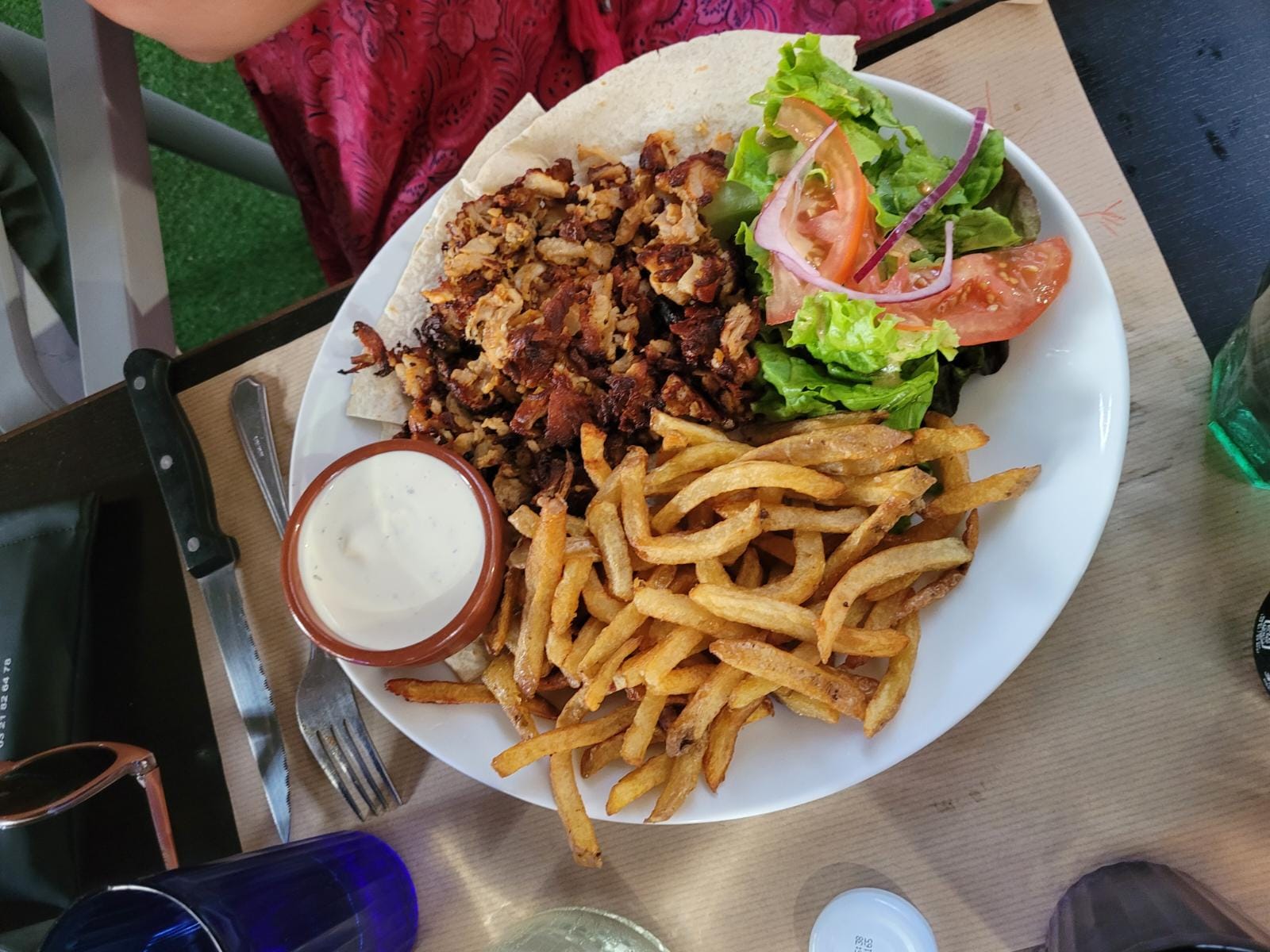 Excellent déjeuner au calme et à l'ombre des platanes, avec en bruit de fond une playlist bien sympathique 👌