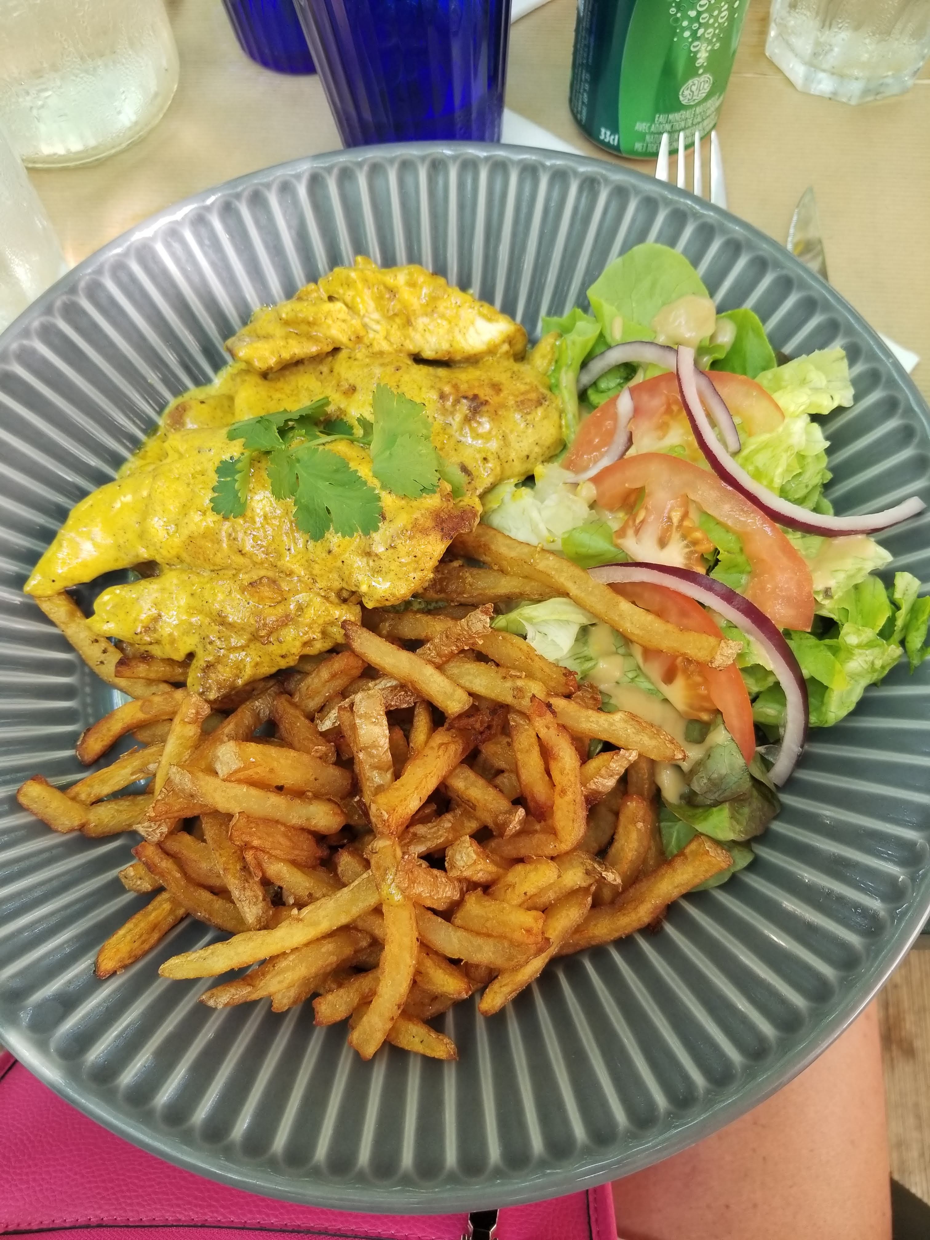 Nous avons déjeunés dans ce resto, à l'ombre des platanes sur la place de l'église. Nous avons appréciés nos plats : poulet sauce curry. Un peu surpris par l'aspect des frites mais bonnes. Très bon accueil du patron. Emplacement propre et prix corrects. Peut-être à une prochaine fois.