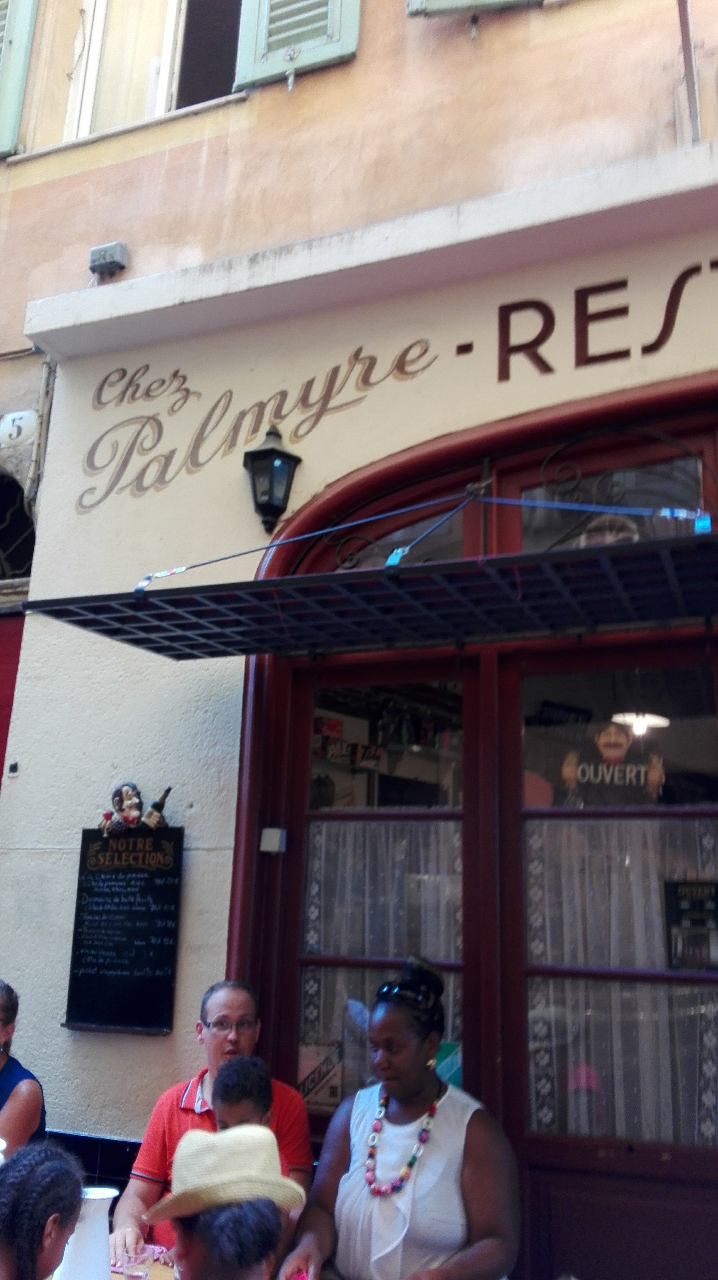 Friends recommended Chez Palmyre and we were glad we dined here. The menu is prix fix from which you can select an entree, main course, and desert. My wife and I had the braised veal and it was delicious. Reservations are required. Ma femme et moi sommes retourné á le Chez Palmyre hier pour le prèmier du temps depuis notre retourné a Nice. Nous avons aimé un repas de l'angeau, que etait fantastique. Le meillure dîner que nous ayons mangé depuis notre retour! Nous recommendons fortement!