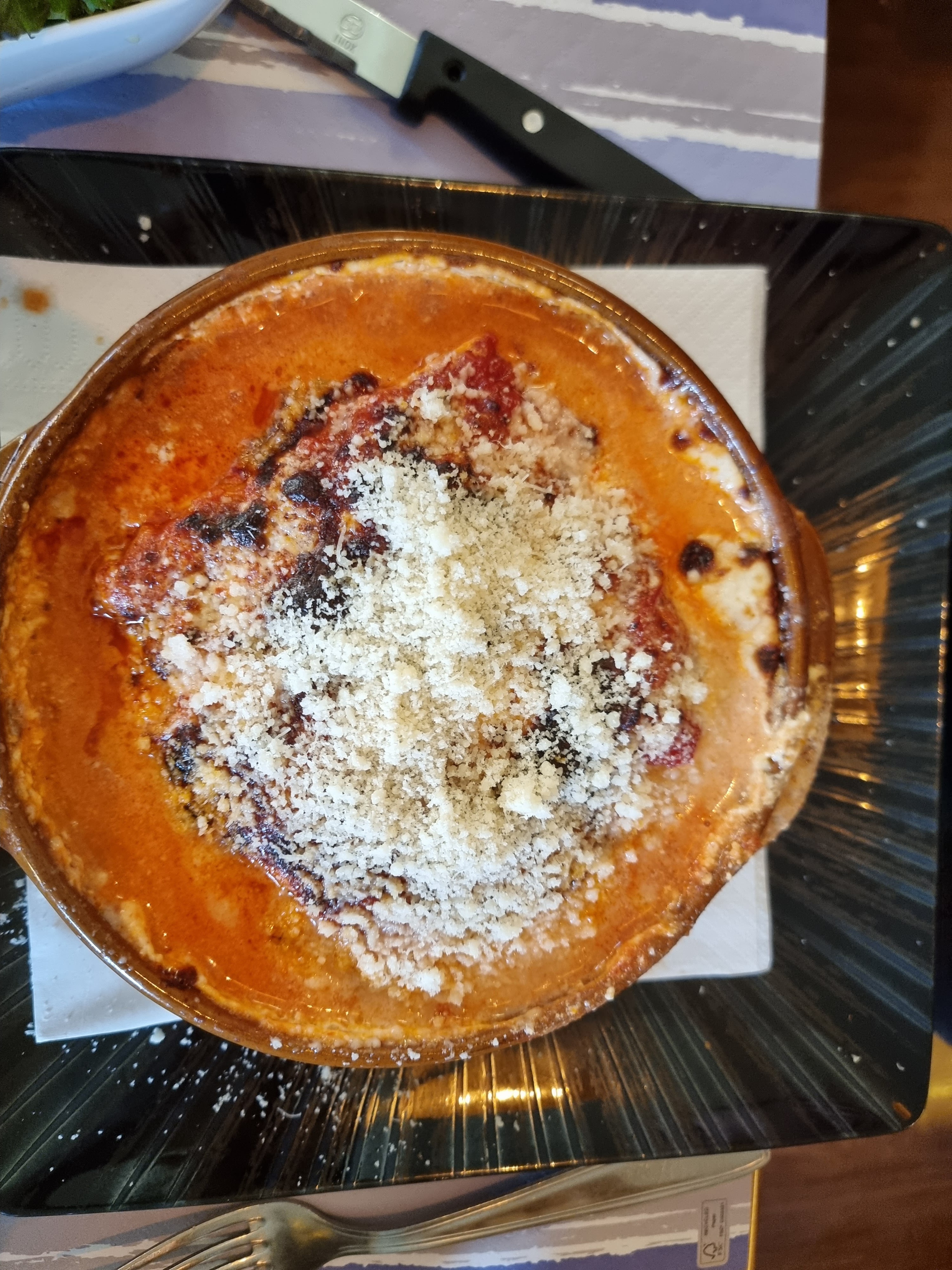 Un service plutôt agréable, la pizza avait une pâte un peu trop fine et cramé, ça rendait la pizza sèche. Ma lasagne était très bonne sauf que le dessus était cramé mais la sauce à la tomate est très bonne.