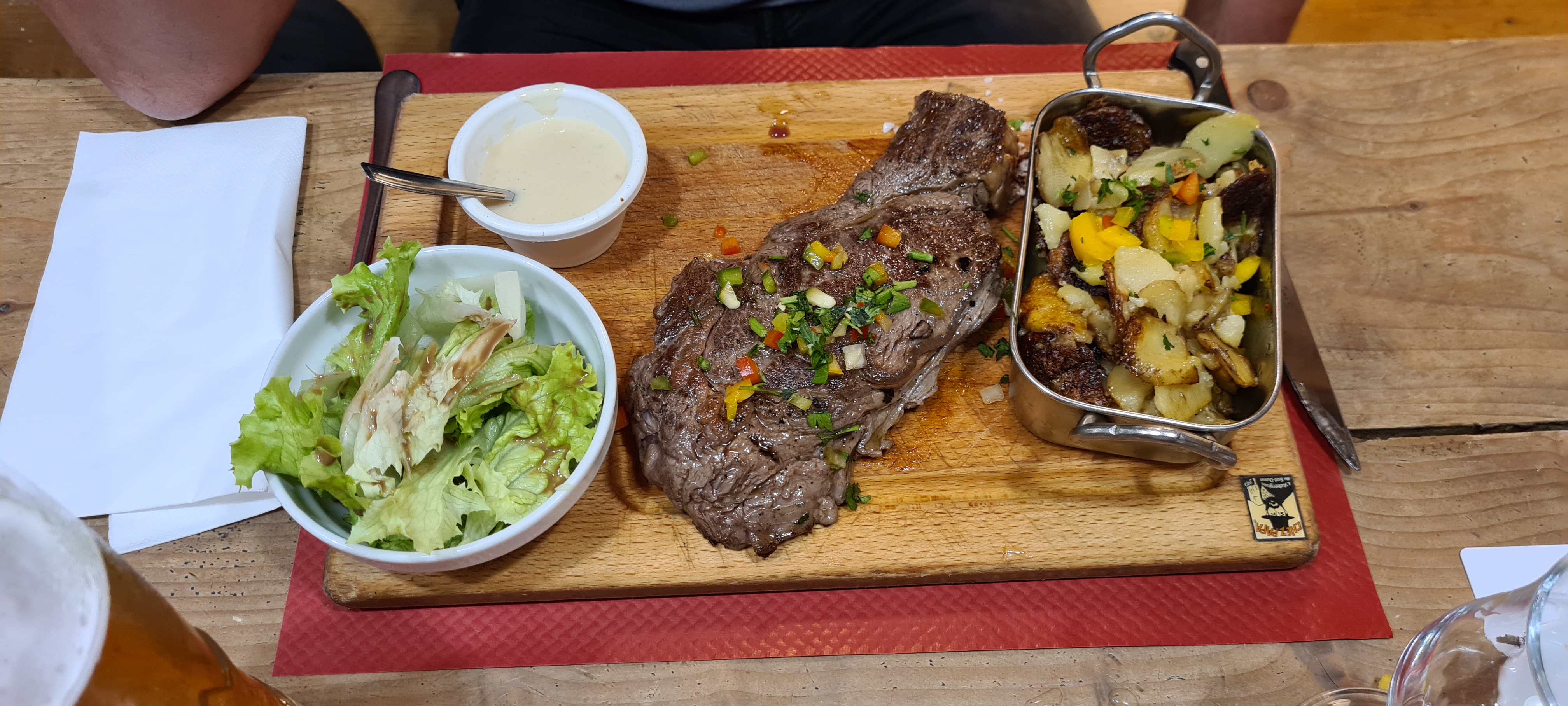 top !! salade gargantuesque, cote de boeuf copieuse et un super service, de quoi bien manger et bien boire à un prix raisonable (12€ le menu) à connaitre absolument ;)